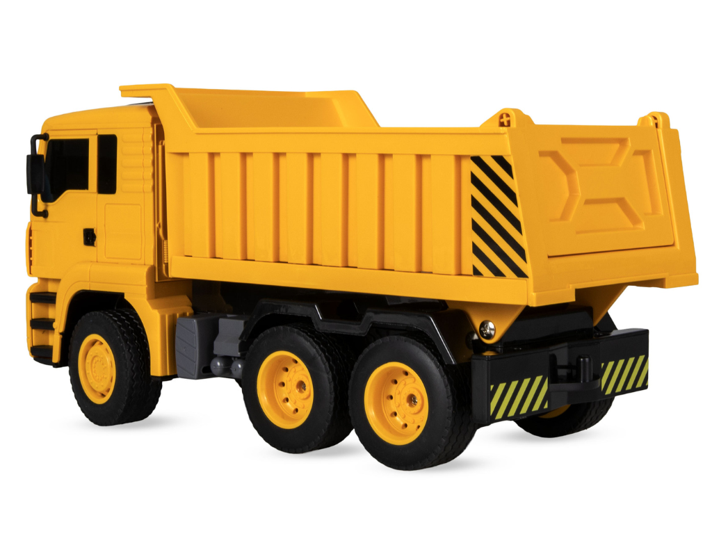 Tudi prekucnik je zasnovan z mislijo na realistično gradbiščno igro. Omogoča popolno upravljanje v vse smeri in ima daljinsko vodeno dviganje in spuščanje kesona, kar je idealno za prevoz materiala. Vpadljiva rumeno-črna barvna kombinacija, gumijasta kolesa in možnost ročne nastavitve smeri sprednjih koles zagotavljajo dobro vodljivost in stabilnost. Prekucnik je prav tako opremljen z LED lučmi in uporablja 2,4 GHz sistem, ki omogoča sočasno upravljanje več vozil brez motenj.