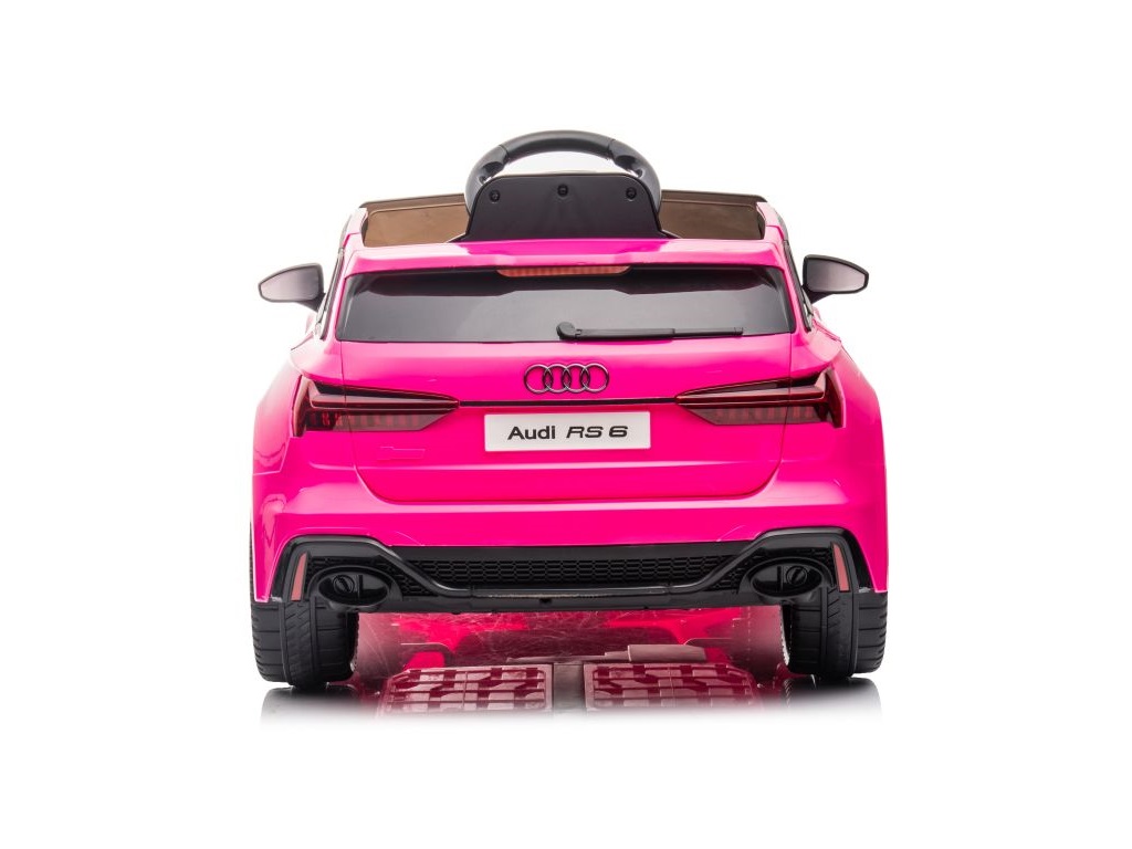 Avto na akumulator Audi RS6 roza ima realističen videz, izvirnih značilnosti, izdelane podrobnosti in logotip na pokrovu motorja, volana, kakovosti materialov in izdelave ter širok plastični sedež. Avto je opremljen tudi z LED lučmi. 2 gumba za sodobno glasbo in pesmi, priključek za MP3 ter USB. Posebna prednost tega vozila pa je v tem, da ima na sprednjem delu ročico, ki vam pomaga pri prevažanju vozila, ko mu zmanjka baterije.