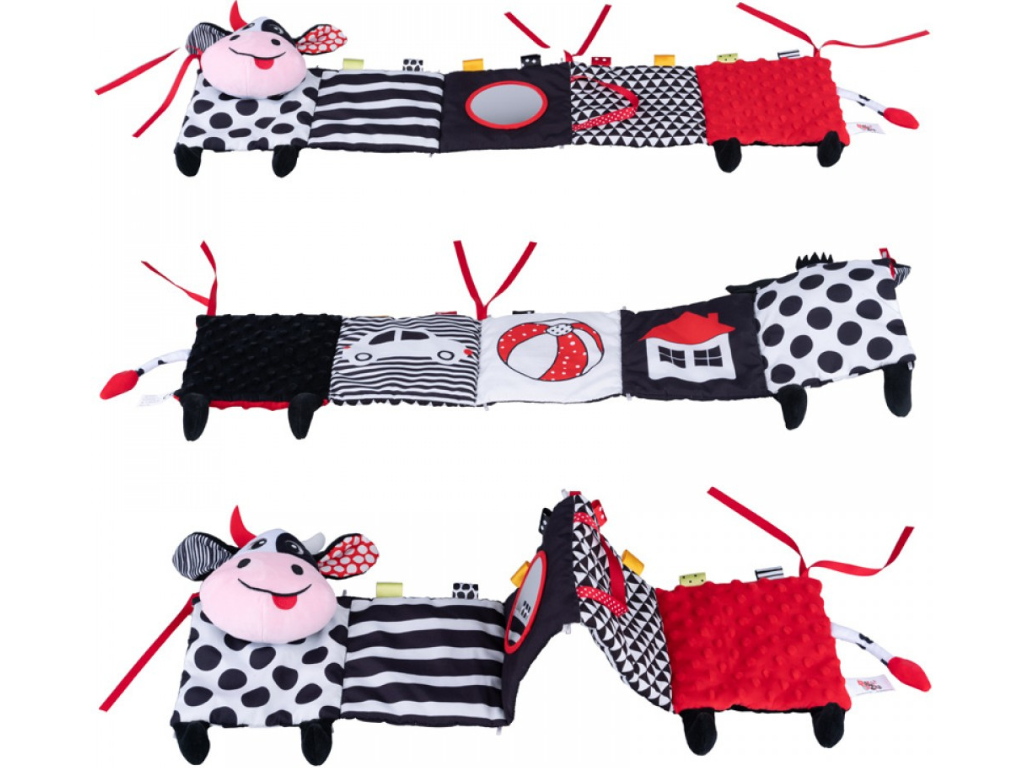 Bali Bazoo raztegljiva knjigica – kravica je mehka in igriva didaktična igrača, namenjena najmlajšim otrokom že od rojstva dalje. Oblikovana je kot plišasta kravica v obliki harmonike, ki pritegne otrokovo pozornost in spodbuja zgodnje raziskovanje.