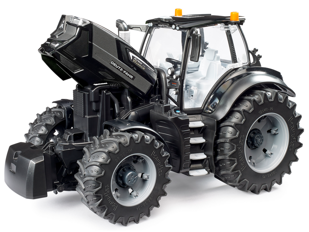 Bruder DEUTZ-FAHR 8280 TTV Warrior je izjemno podrobna in realistična maketa traktorja, ki združuje moč, natančnost in vrhunski dizajn. Ta ekskluzivna črna različica, imenovana Warrior, navdušuje s sodobnim videzom in bogato funkcionalnostjo, ki otrokom omogoča pristno doživetje kmetijskega dela. Model je izdelan v merilu 1 : 16 in je zasnovan po vzoru pravega traktorja z močjo 287 KM, kar se odraža tudi v njegovi robustni in prepričljivi podobi.