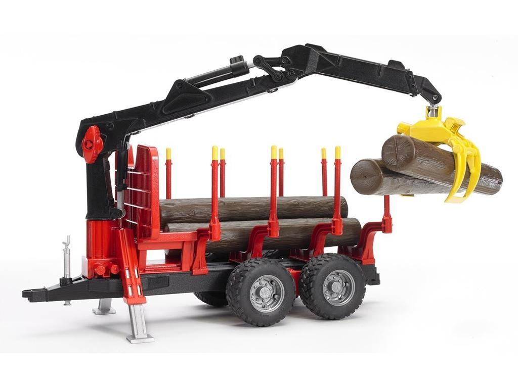 Bruder prikolica za les z nakladalko 02252 – Ta funkcionalni priklopnik s priključkom, štirimi nastavljivimi stebri in štirimi hlodi je pripravljen za igranje. Je zelo funkcionalen in podrobnosti so zelo realistične. Zaradi vsestranske nihajne osi ima prikolica lahko delo na zahtevnem terenu. Model ima vrtljiv in vrtljiv nakladalni žerjav, kar pomeni, da hlodov ne le prevažate, temveč jih tudi nalagate in razkladate. Dodatne predmete je mogoče pritrditi tudi zaradi standardne zadnje vlečne kljuke. Sliko dopolnjujejo mehke pnevmatike s tekalno plastjo.