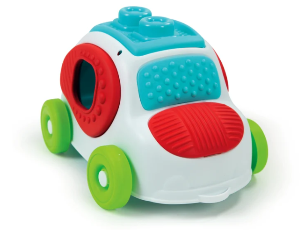 Igrača je izdelana iz varnih, mehkih materialov, ki so prijetni na dotik in primerni za najmlajše otroke. Poleg tega so avto in kocke enostavni za čiščenje, saj jih lahko operete tudi v pomivalnem stroju, kar zagotavlja higieno in dolgotrajno uporabo.