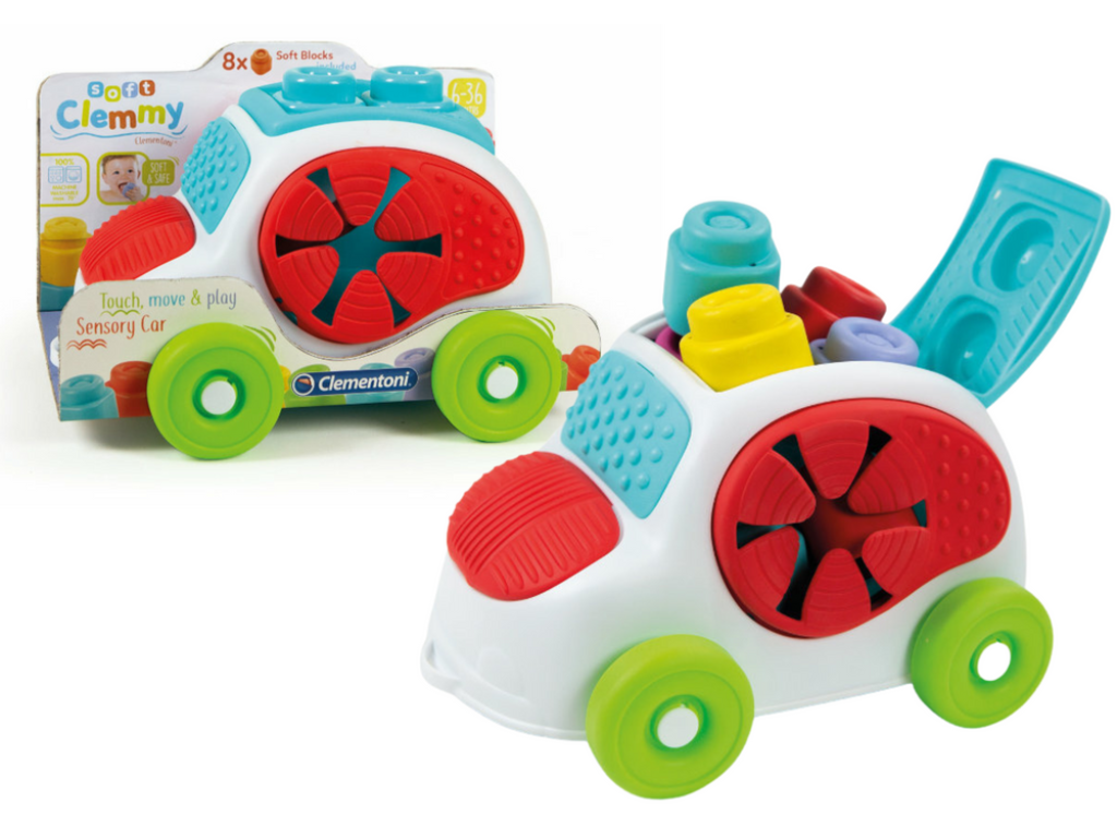 Clementoni senzorični avto s kockami je inovativna igrača, zasnovana posebej za najmlajše, saj združuje zabavo, raziskovanje in razvoj čutov. Mehki elementi, kot so priljubljene Clemmy kocke, omogočajo otrokom varno igro ter spodbujajo tipanje, prijemanje in raziskovanje različnih tekstur, oblik in vzorcev.