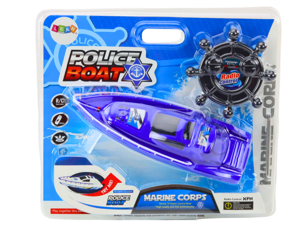 Realistični policijski čoln na daljinsko upravljanje z natančnim 27 MHz upravljanjem. Spodbuja ustvarjalnost in spretnosti. Za otroke 3+. CE in EN71 certifikat.