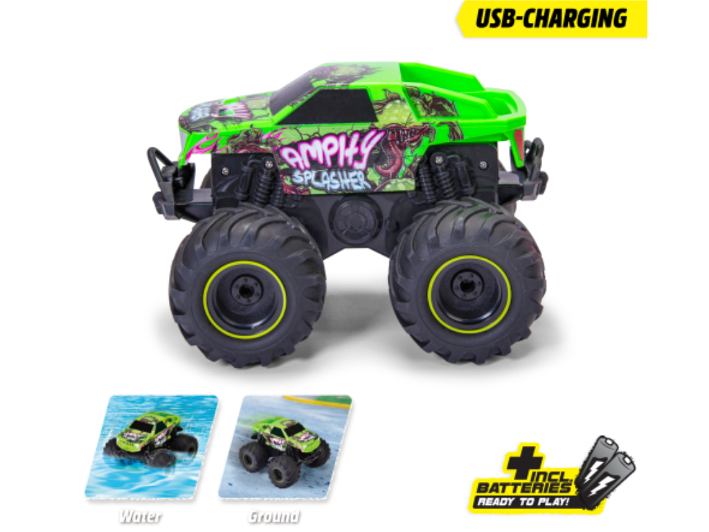 RC Amphy Splasher je vodoodporno amfibijsko vozilo s 4×4 pogonom, ki omogoča zabavno vožnjo po kopnem in vodi. Idealno za aktivno igro na prostem.