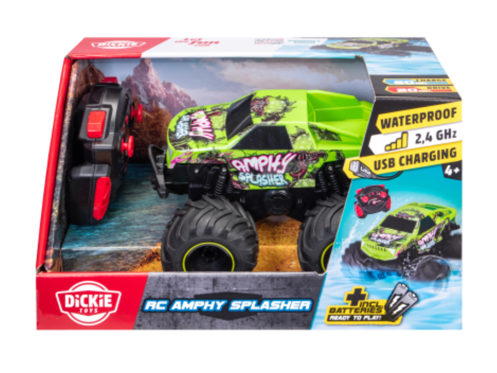 Dickie RC Amphy Splasher RTR je zabavno daljinsko vodeno vozilo, ki navdušuje s svojo sposobnostjo vožnje tako po kopnem kot po vodi. Zaradi vodoodporne zasnove in 4×4 pogona je idealno za raznolike terene ter nepozabne dogodivščine na prostem.