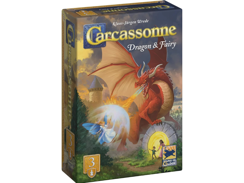 Dodatek za Carcassonne – Zmaj in vila – Z razširitvijo Zmaj in vila v Carcassonne vstopi čarobni svet, ki povsem premeša ustaljene strategije. Po pokrajini tava lačni zmaj, ki požira sledilce na svoji poti, zato boste morali svoje poteze skrbno načrtovati in se izogibati nevarnim območjem. Da bi zaščitili svoje meeple, lahko pokličete vilo, ki ne le varuje vaše sledilce, temveč vam prinaša tudi dodatne točke.