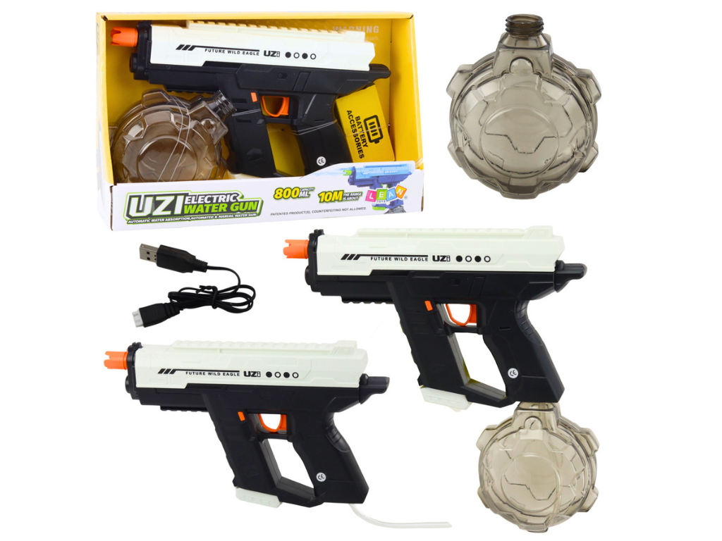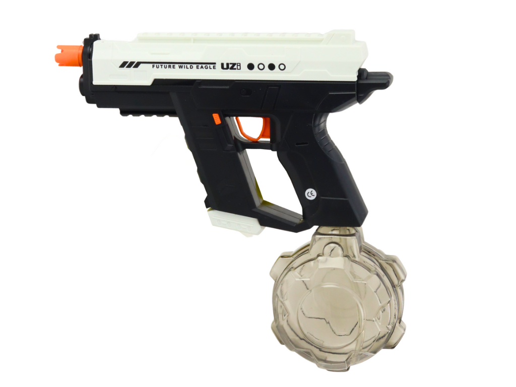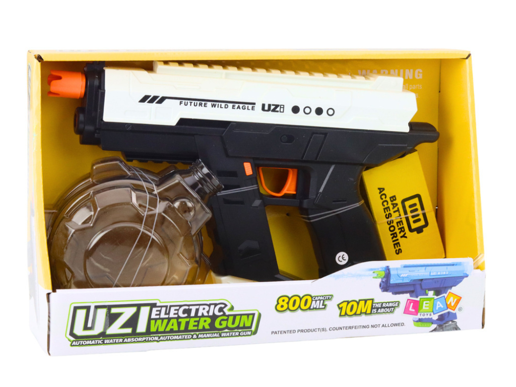 Električna vodna pištola črno bela – 10 m Iščete igračo, ki bo združila slog, funkcionalnost in neustavljivo poletno zabavo? Električna vodna pištola s črno-belim dizajnom in impresivnim rezervoarjem v obliki granate s prostornino kar 800 ml je prava izbira za otroke in odrasle, ki želijo dolgotrajno in brezskrbno akcijo na prostem!