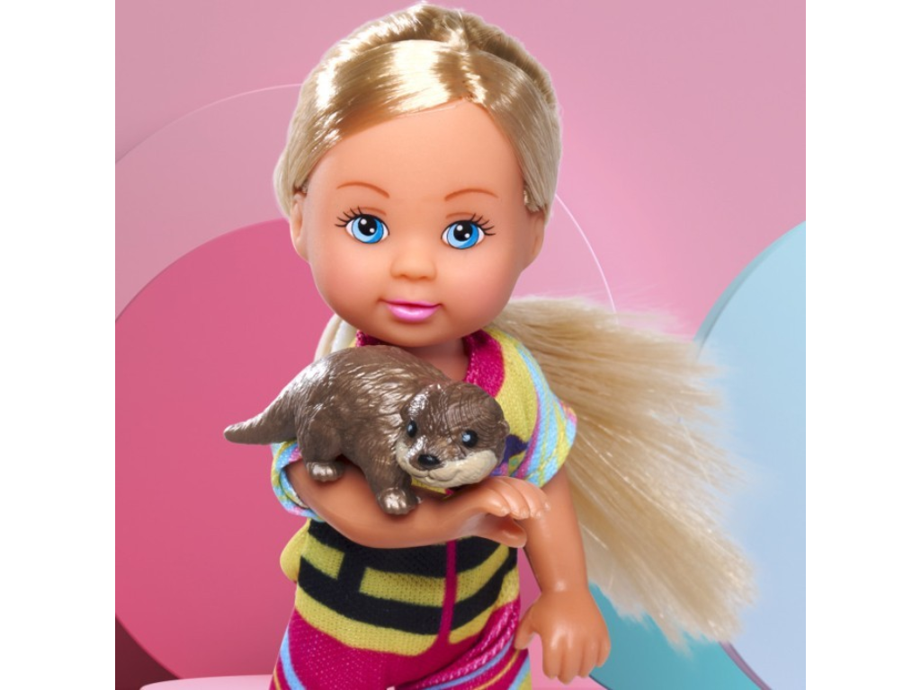 Barvit kajak je okrašen z ljubkimi srčkastimi motivi, ki so značilni za svet Evi Love in igri dodajo veselo, otrokom prijazno noto. Posebnost kompleta je tudi figurica vidre, ki Evi dela družbo na njeni vodni pustolovščini in spodbuja otroke k ustvarjanju zgodb o prijateljstvu, naravi in raziskovanju. Komplet je zasnovan tako, da spodbuja igro vlog, razvoj domišljije ter fino motoriko, saj otroci upravljajo s punčko, kajakom in dodatki.