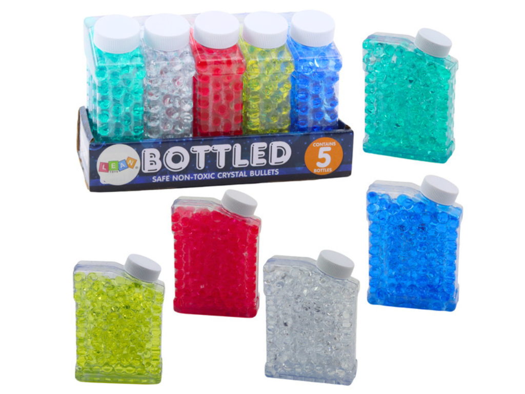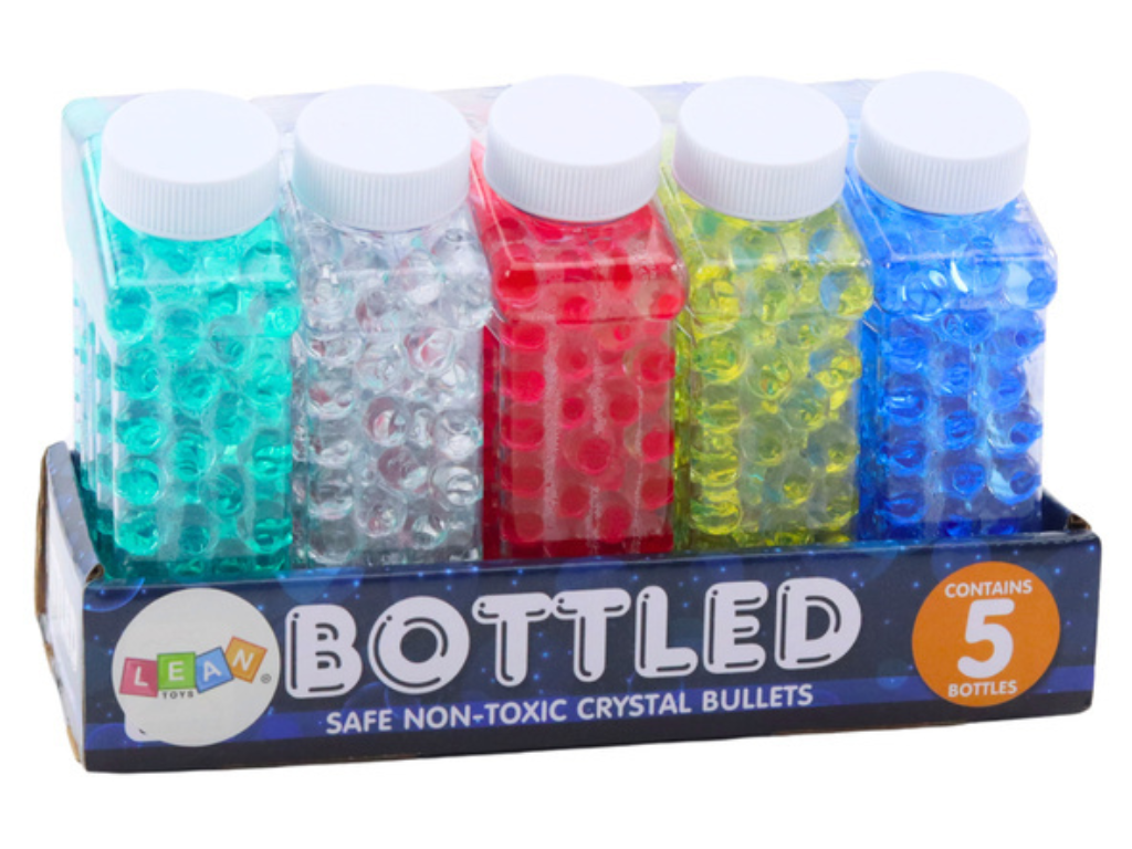 Set 5 plastenk z vodnimi kroglicami – 400 kosov v različnih barvah. Kroglice (9–11 mm) so mehke, netoksične in primerne za vodne pištole. Odlično darilo za ustvarjalno igro na prostem!