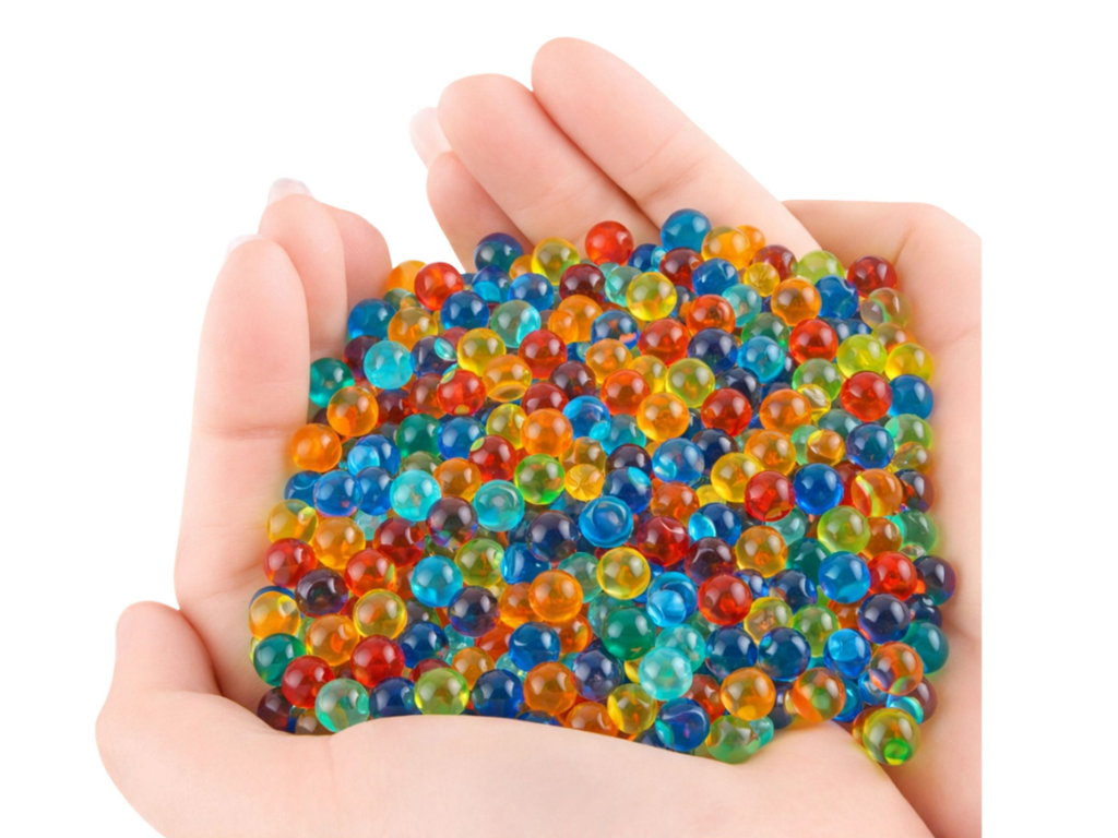 praktična in zabavna izbira za uporabo v otroških vodnih pištolah in puškah. Majhne granule se ob stiku z vodo povečajo in v nekaj urah spremenijo v mehke, barvite kroglice premera približno 7–8 mm, ki so primerne za večino tovrstnih igrač na trgu. Zaradi svoje strukture omogočajo gladko delovanje in prijetno izkušnjo pri igri.