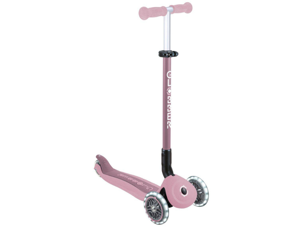 Globber skiro GO UP Active ECO Lights – roza je vsestranski in trajnostno zasnovan otroški skiro, ki raste skupaj z vašim otrokom. Ta inovativni 3-v-1 model združuje poganjalček s starševskim vodilom, samostojni poganjalček in klasični skiro, zato je primeren za različne razvojne faze – od prvih korakov pa vse do samozavestne vožnje.