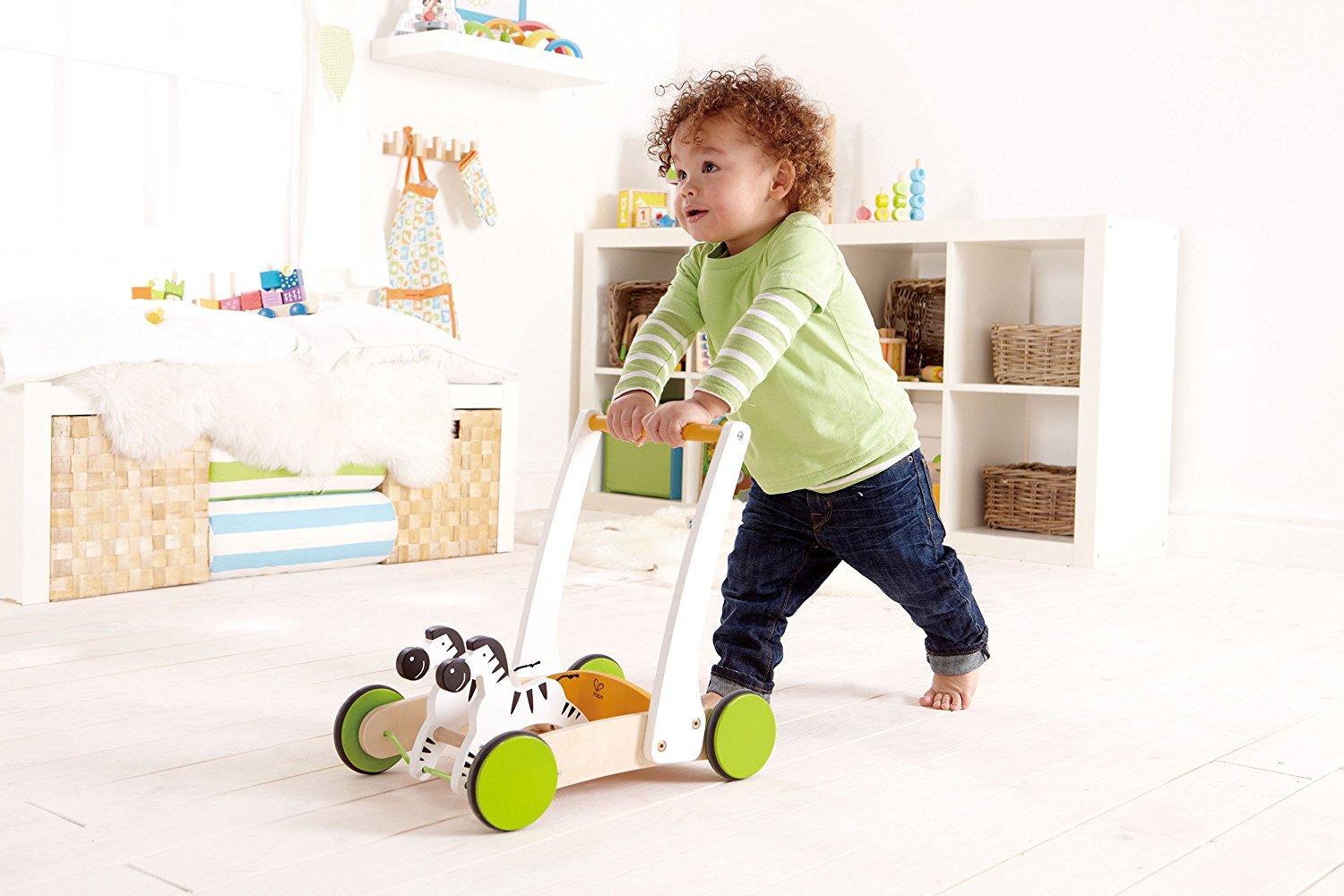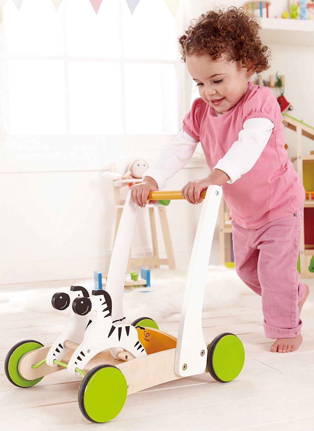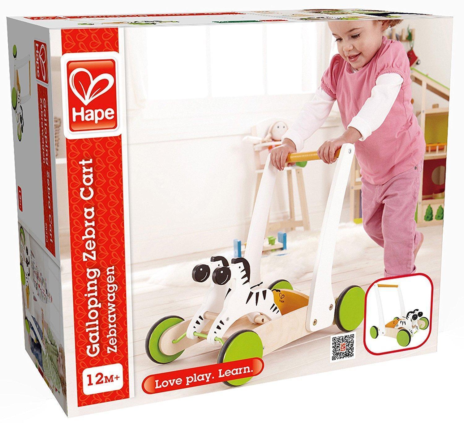 Hape Voziček za učenje hoje E0373 zagotavlja trdno osnovo za potiskanje in je osnova za gibanje. Z zebro, ki vedno hiti se otrok zelo zabava. Spretnosti, ki se jih otrok uči: koordinacija, ravnotežje in fizična moč, domišljija.