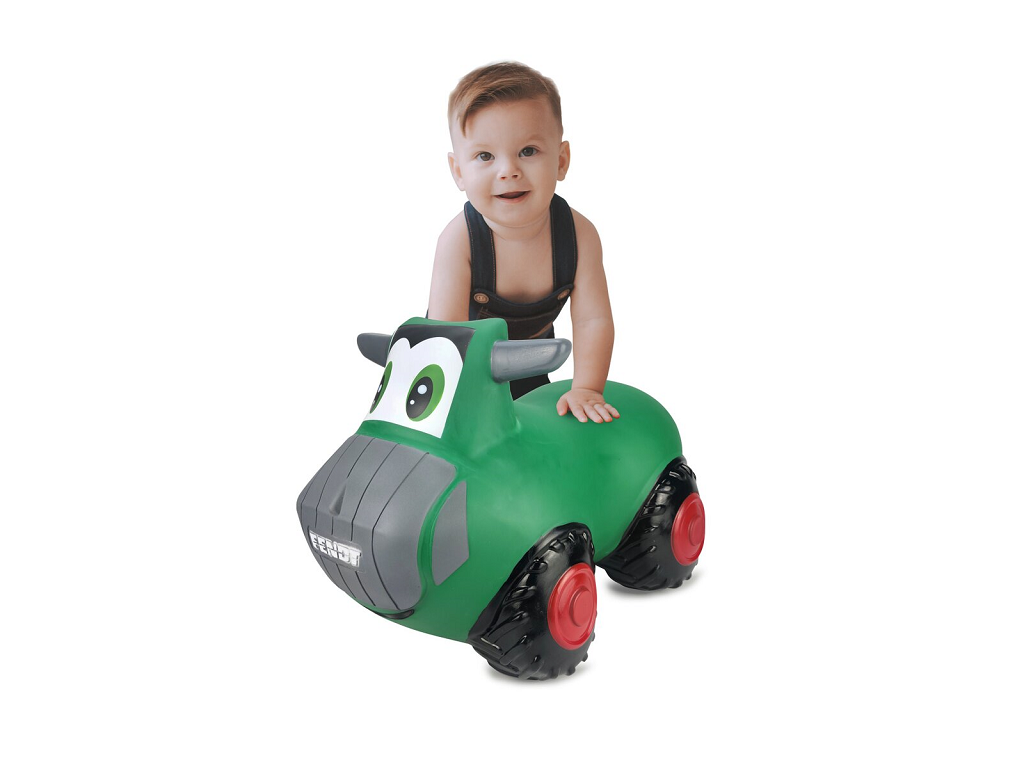S sedenjem in poskakovanjem na napihlivem traktorju otrok krepi mišice trupa in ravnotežje, kar je osnova za kakovosten gibalni razvoj in spretnost. Traktor je primeren tudi za oporo pri poskusih samostojnega vstajanja.