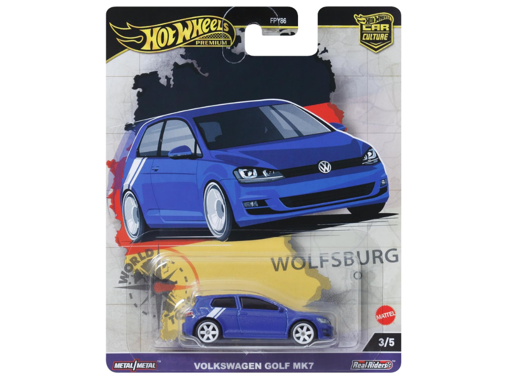 Hot wheels Volkswagen Golf MK7 iz serije Car Culture: World Tour v merilu 1:64 predstavlja eno najuspešnejših generacij Golfa, ki je zaznamovala sodobno avtomobilsko industrijo. Volkswagen Golf MK7 je bil znan po svoji napredni tehnologiji, udobju in športnem značaju, ki je znal zadovoljiti tako vsakodnevne voznike kot tudi avtomobilske navdušence. Njegov preprost, a eleganten dizajn in široka priljubljenost po svetu sta ga uvrstila med prave avtomobilske ikone.