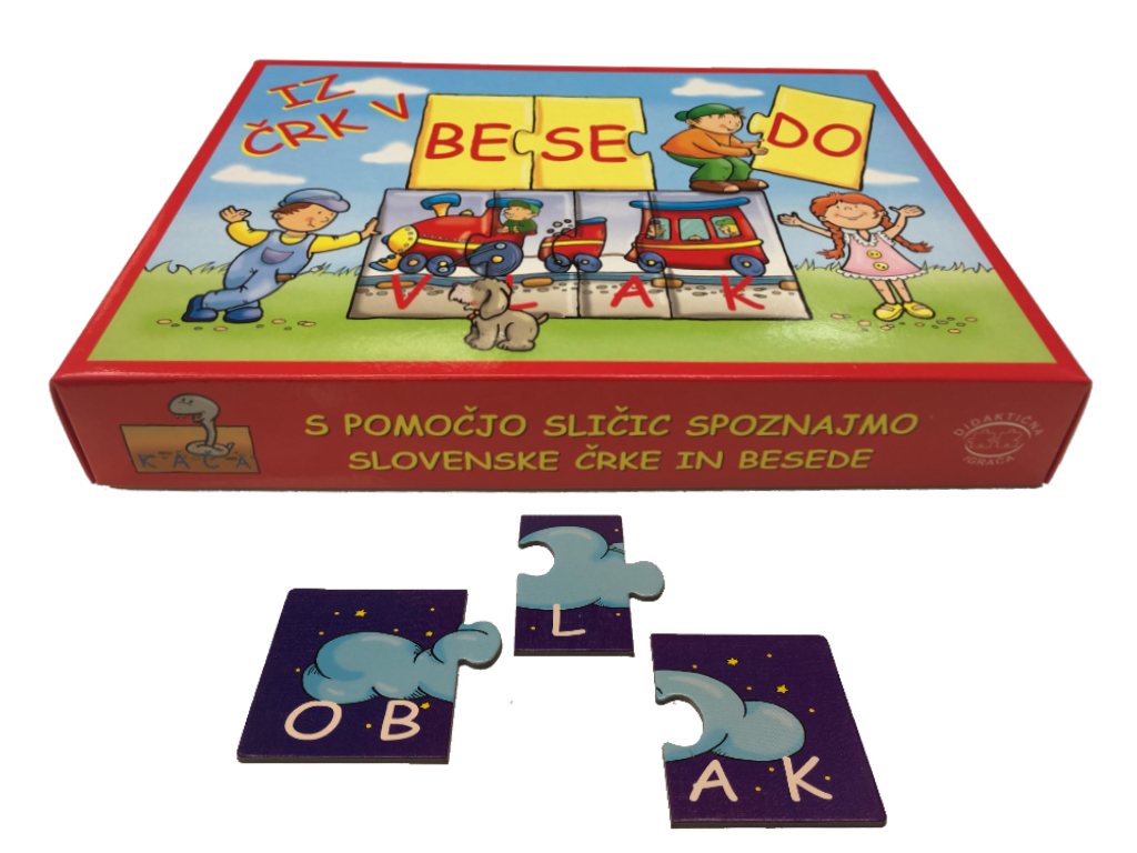 Igra Iz črk v besedo je poučna igrica za otroke, starejše od treh let s katero se bo lahko zabavala cela družina. Manjši bodo lahko sestavljali simpatične sličice, starejši otroci pa bodo s sestavljanjem posameznih črk ali zlogov v besede skozi igro hitreje in lažje spoznavali slovenske besede. Igra vsebuje 20 različnih besed.