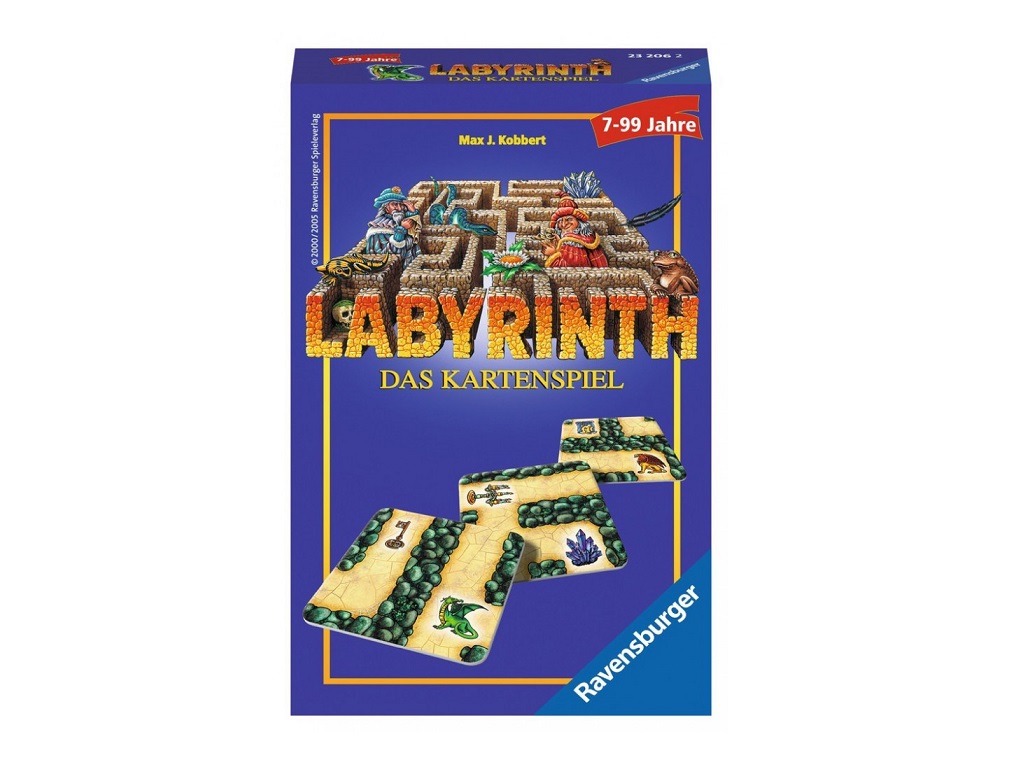 Igra labirint – mini Ravensburger – Kratka pravila, a nešteto možnih kombinacij. Labirint iz kart je napeta igra do konca. Le kdor premišljeno polaga karte in zbere veliko zakladov je zmagovalec igre. Število igralcev: 2 – 6, od 7-99 let.