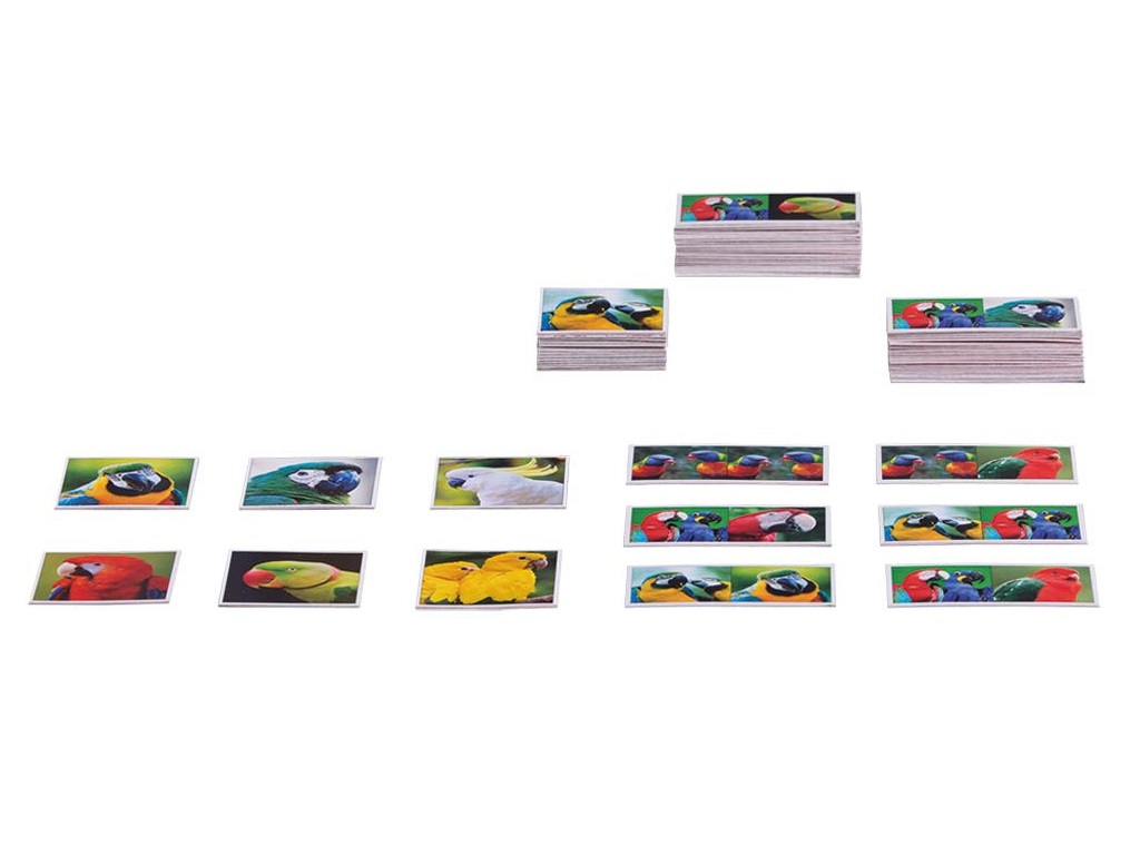 Igra Spomin in domine – Papagaji – Ta igra ponuja dva klasična izziva v enem – spomin in domine. Različne slike papig bodo preizkusile vašo pozornost in logično razmišljanje, saj morate pri spominu najti pravilne pare, pri dominu pa povezovati ustrezne ploščice.