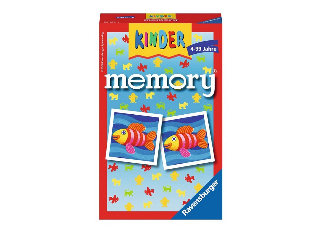 Igra spomina Kinder Ravensburger – Klasična igra Memory, spomin, iskanje parov. V kompletu 48 sličic (24parov). Primerno za otroke od 4 leta naprej, tudi za odrasle. Za 2-4 igralce.
