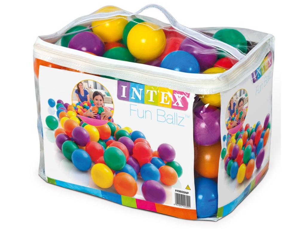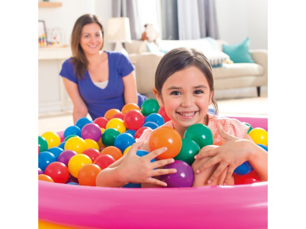 Intex set žogic 8 cm vsebuje 100 mehkih in barvitih žogic za igro doma ali na prostem. Zaradi varnega materiala in praktične embalaže je idealen za ure zabave.