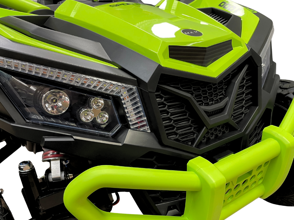 Avto na akumulator UTV ZH666 24V 4×4 je primeren za otroke starejše od treh let. Je zmogljivo in zabavno vozilo za otroke od 3. leta starosti. Opremljen je s 4 motorji,napihljivimi gumijastimi kolesi, LED lučmi ter funkcijami USB, MP3 in Bluetooth. Maksimalna hitrost znaša do 15 km/h, vrata se odpirajo, vključuje pa tudi varnostni pas za dodatno varnost.