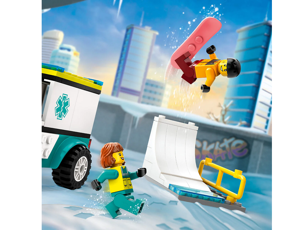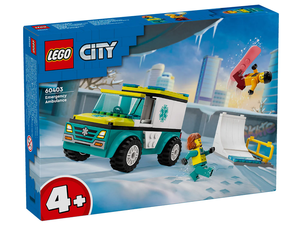 LEGO City Rešilni avto in bordar – vstopite v svet kakovostne igre z LEGO® City Rešilnim avtom in bordarjem (60403) ter se pridružite malemu sestavljalcu pri ustvarjanju vznemirljivih dogodivščin. Ta igralni komplet prinaša realističen rešilec s pnevmatikami za terensko reševanje, ki je pripravljen na vsako avanturo. Na mini prizorišču z zasneženim rolkarskim parkom se odvijajo zanimive situacije, in ob tem se pojavita še minifiguri bordarja in reševalca, ki bosta popestrila domišljijsko pripovedovanje zgodb.