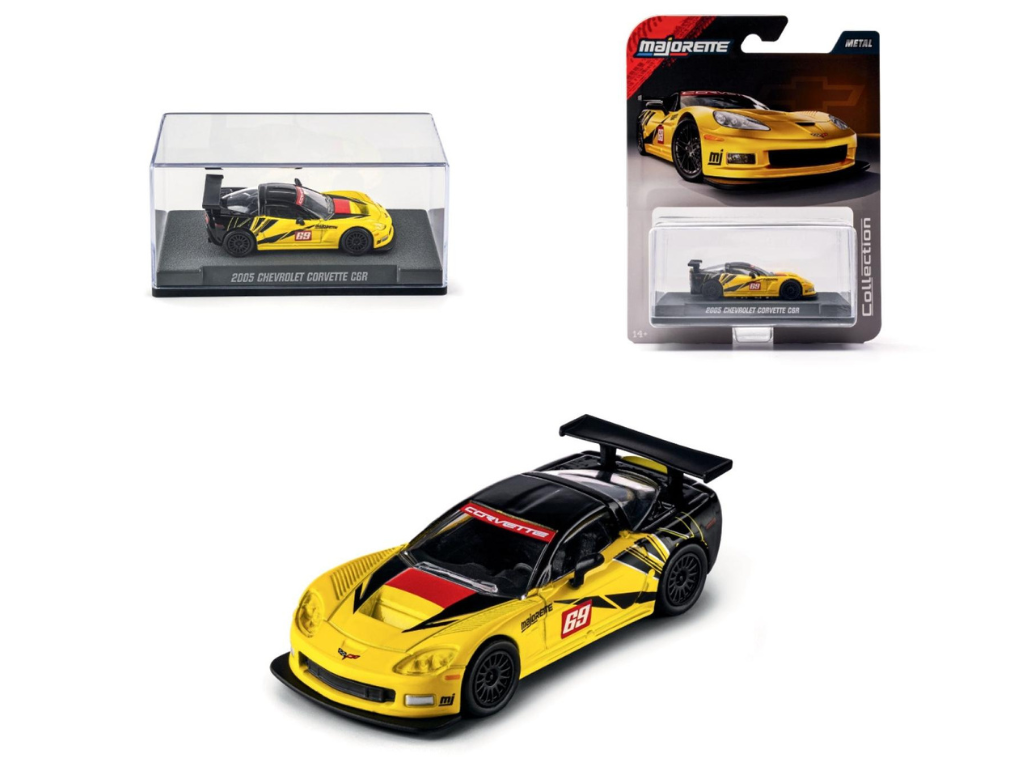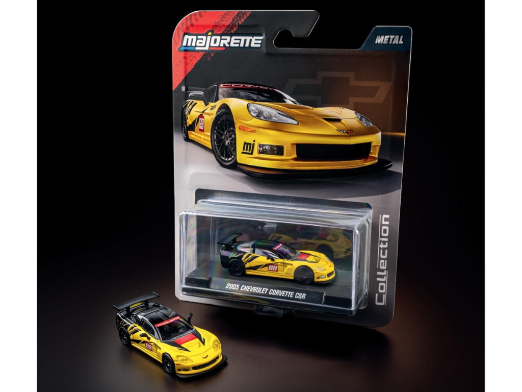 Majorette Collection 2005 Chevrolet Corvette C6 R – Ta posebna izdaja prinaša skrbno izbrane modele, ki oživljajo legendarne klasike iz obdobja 1955–2005. Vsaka miniatura izstopa z vrhunskimi detajli: kovinsko podvozje, gumijasta kolesa, posebej vstavljeni žarometi, natisnjena ogledala ter elegantna razstavna škatlica.