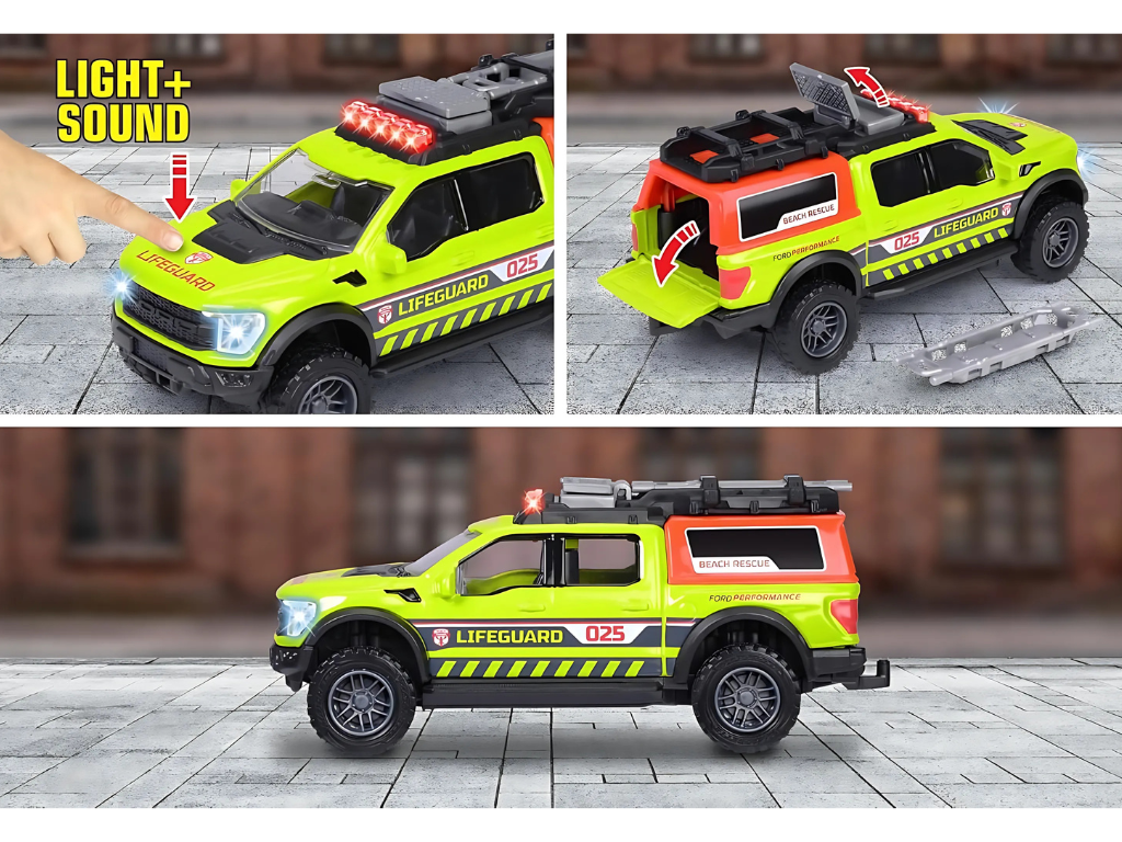 S Ford F-150 Raptor Lifeguard lahko otroci ustvarjajo lastne scenarije reševanja, raziskujejo domišljijski svet in razvijajo ročne spretnosti.