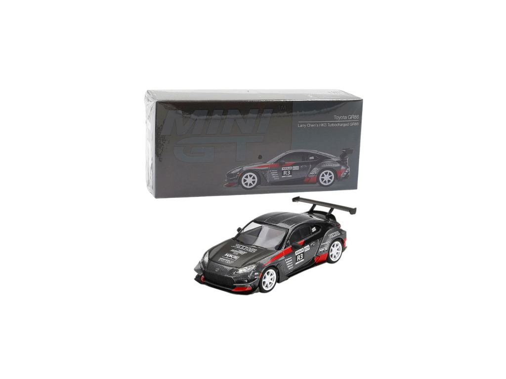 Mini GT Toyota GR86 HKS Turbocharged je zbirateljski model v merilu 1:64, ki natančno reproducira posebno različico Toyota GR86, opremljeno s HKS turbo sistemom po dizajnu Larryja Chena. Model združuje sodoben japonski športni dizajn z dirkaškimi detajli in agresivnimi linijami.