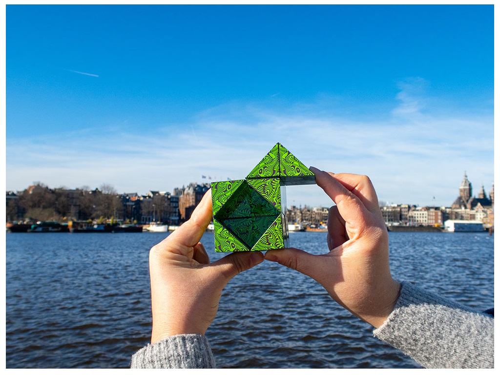 Mislena igra Dynacube – Dolge vrste, čakalnice, ura nenehno tiktaka… dobro, da si prinesel svoj Dynacube! Neskončne variacije za zaposlene prste. Vzemi ga v roke in ga nikoli ne boš hotel spustiti. Prve geometrijske oblike so enostavne — ampak kaj pa drugih 100?