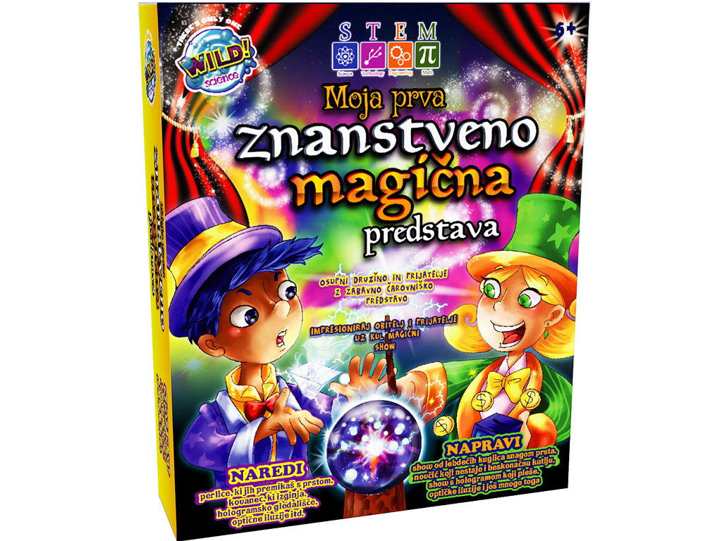 Postani zvezda čarovniškega šova s pomočjo znanosti! Začaraj lebdeče kroglice, sestavi čarobni hologram in igraj se v 3D vesolju. Pričaraj mavrične odtenke z čarobnim dotikom. Z navdušujočimi triki skrij kovance in celo svoj prst. In še mnogo več trikov, ki bodo navdušile občinstvo. Primerno za 6+