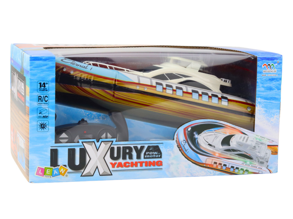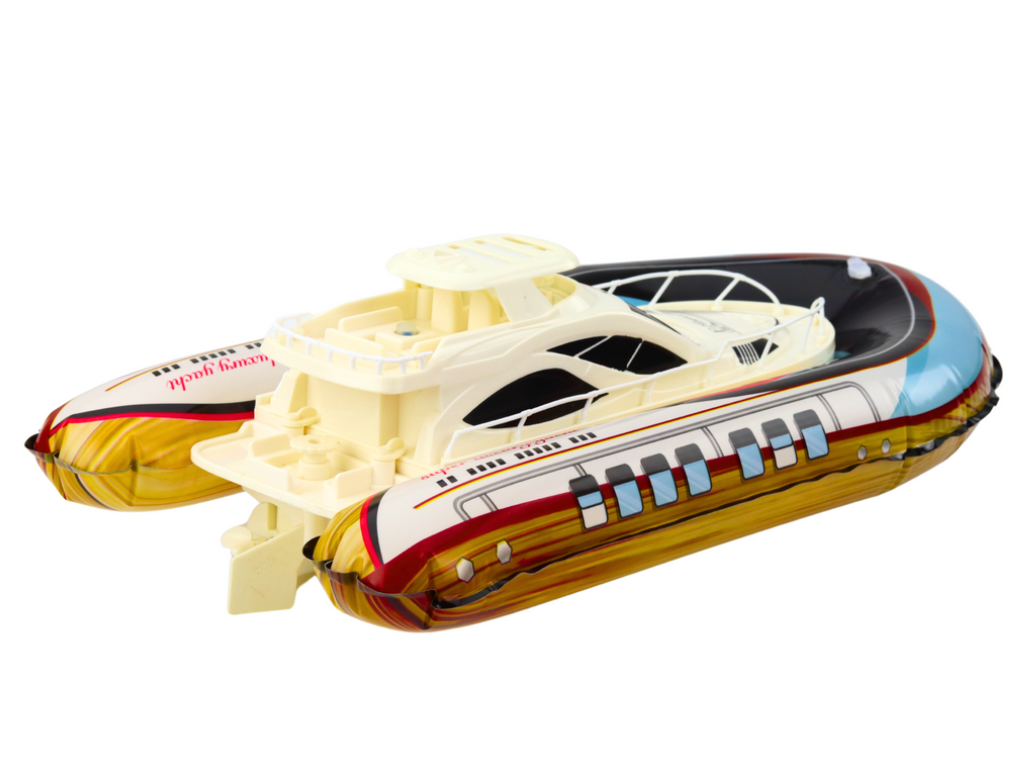 Model omogoča varno in dinamično igro na vodi – v bazenu, ribniku ali jezeru. Napihljiv trup varuje jahto pred potopitvijo, hkrati pa omogoča gladko plovbo. Z ergonomskim daljinskim upravljalnikom (napajanje 2x AA bateriji, niso priložene) ima uporabnik popoln nadzor nad smerjo vožnje. Jahta deluje na 4x AA baterije (niso priložene), kar omogoča dovolj dolgo in energično vožnjo.