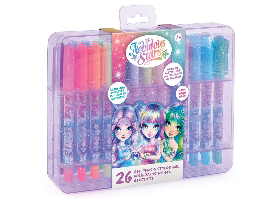 Komplet Nebulous Stars Gel rolerji 26/1 vključuje 26 barvnih gel pisal v bleščečih, kovinskih in neonskih odtenkih. Popoln je za ustvarjanje, risanje in pisanje s pridihom čarobnosti.