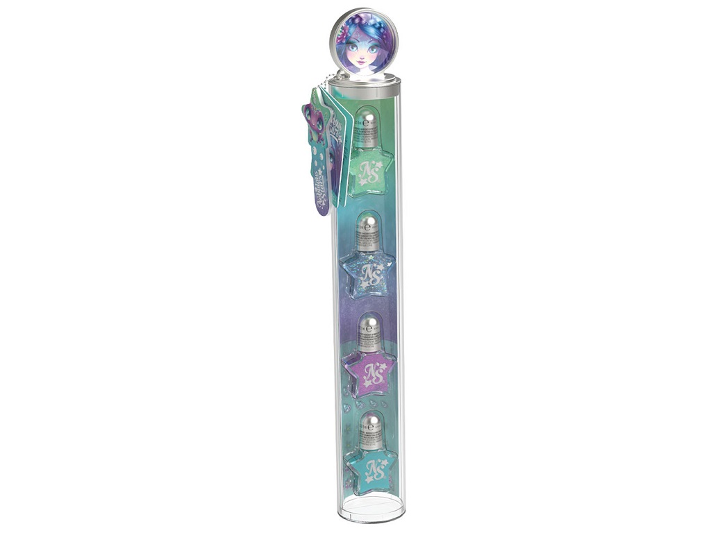 • Komplet vsebuje 4 lake za nohte, 40 nalepk in pilico