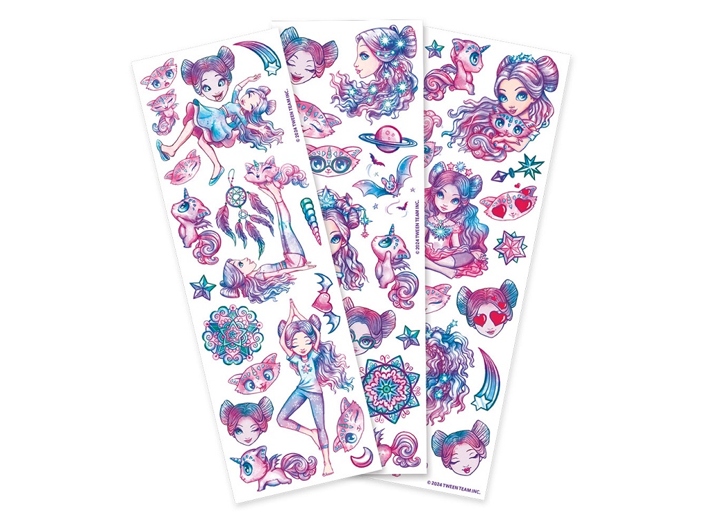 Nebulous Stars Tattoo nalepke mini – več motivov – Odkrijte 50 majhnih začasnih tatujev, ki so zasnovani z originalnimi ilustracijami, navdihnjenimi s svojimi najljubšimi liki. Set vsebuje 4 različne modele, ki so na voljo v 3 različnih listih tetovaž, zaradi česar lahko ustvarite edinstvene kombinacije in izrazite svojo kreativnost.