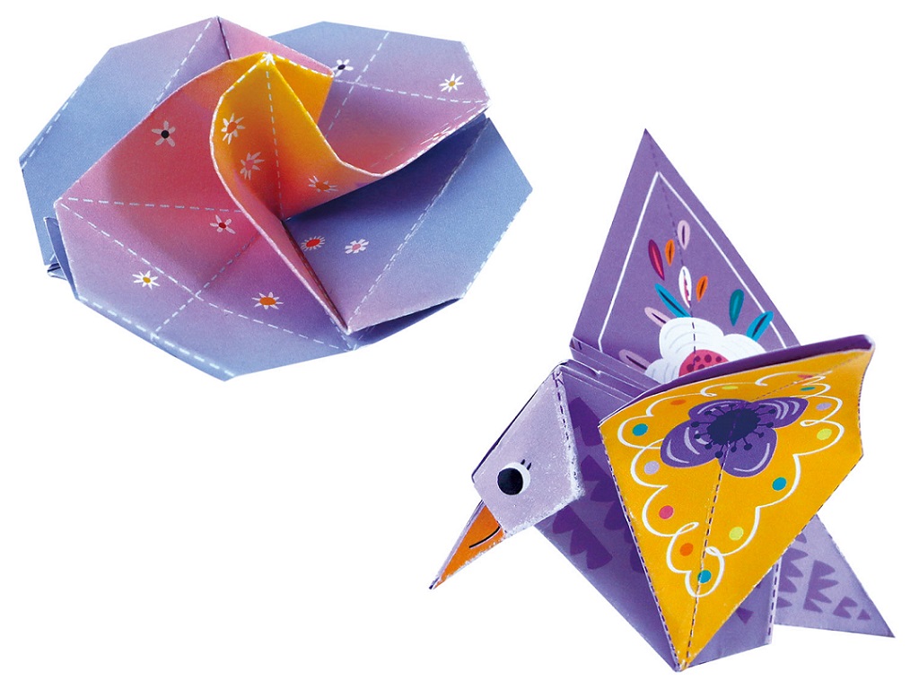 - Knjižica s podrobnimi navodili: Priložena knjižica vsebuje natančna navodila, ki otroke korak za korakom vodijo skozi postopek izdelovanja origamijev. Navodila so enostavna za sledenje, zato so primerna tudi za začetnike.