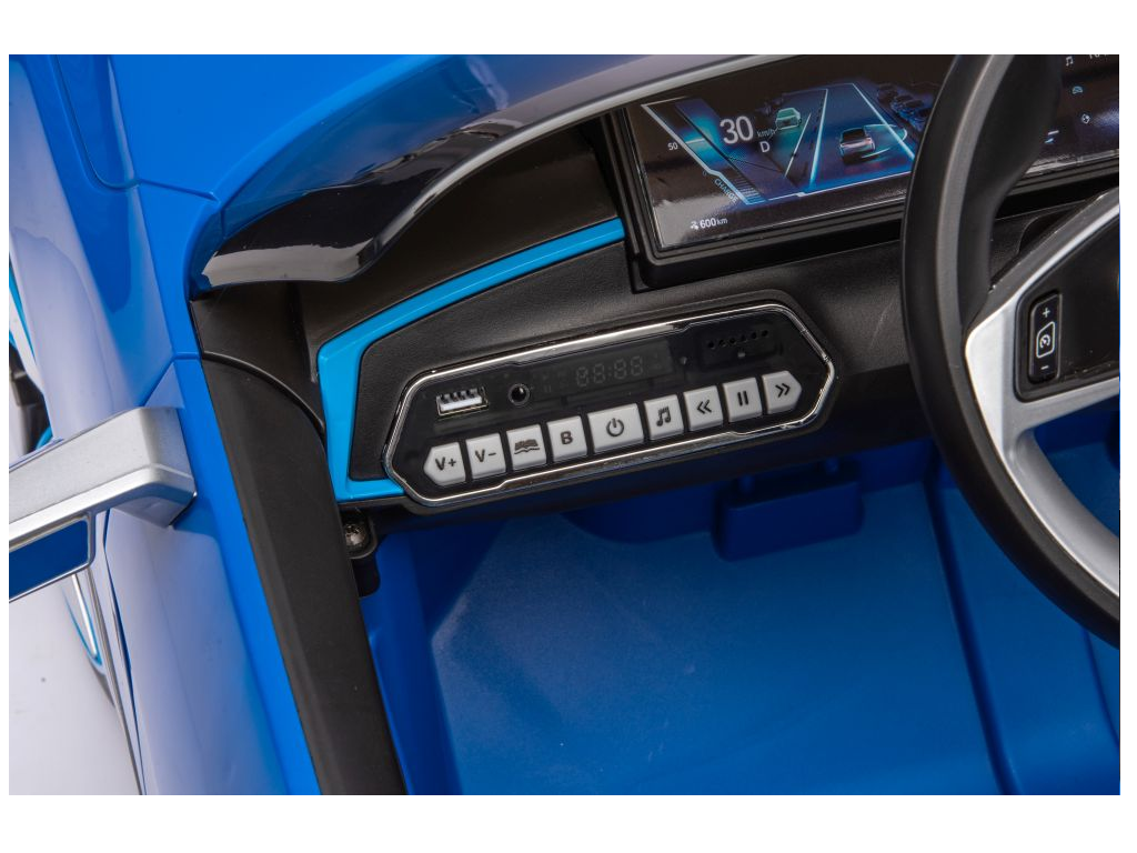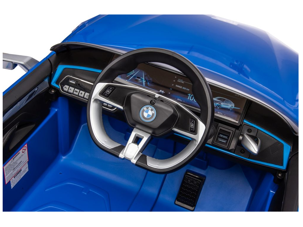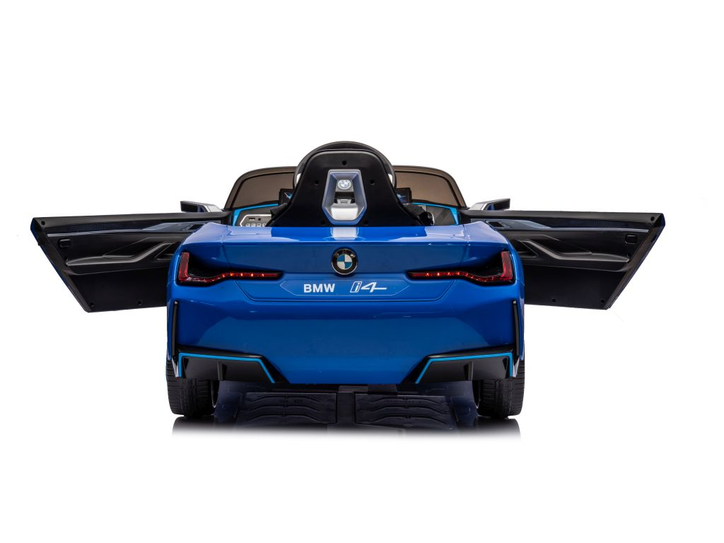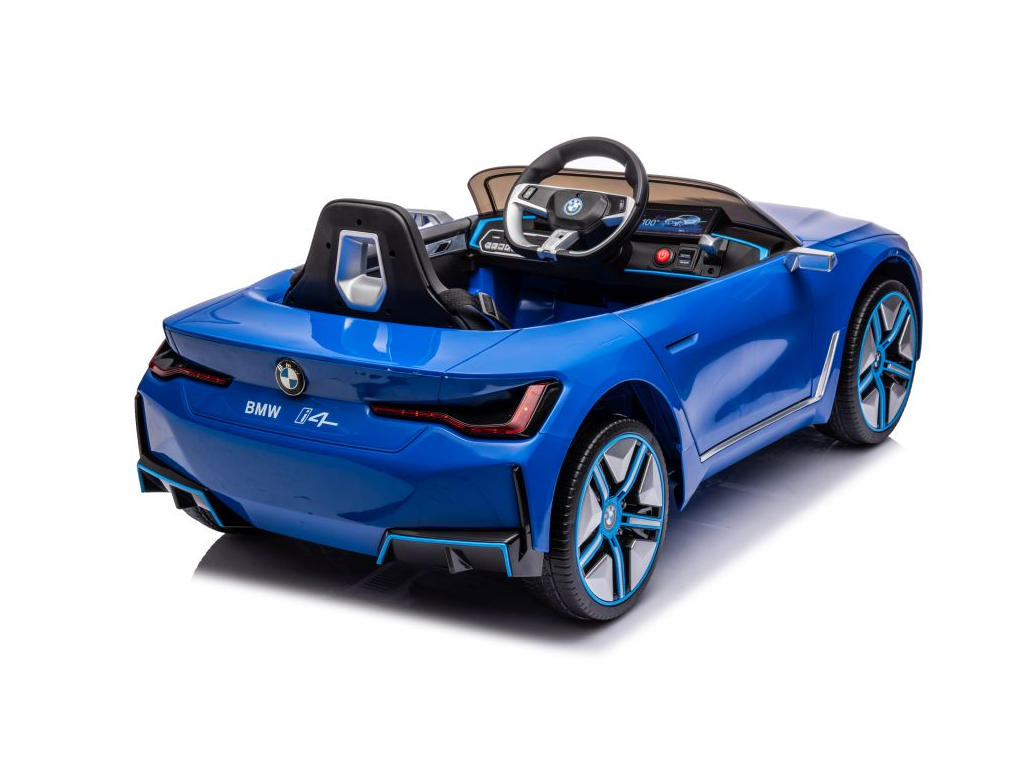 Otroški avto na akumulator BMW i4 moder ima realističen videz, izvirne značilnosti, izdelane podrobnosti in logotip na pokrovu motorja, volana, kakovosti materialov in izdelave ter širok sedež iz umetnega usnja. Avto je opremljen tudi z LED lučmi. Avto ima priključek za MP3 ter USB in možnost Bluetooth povezave.