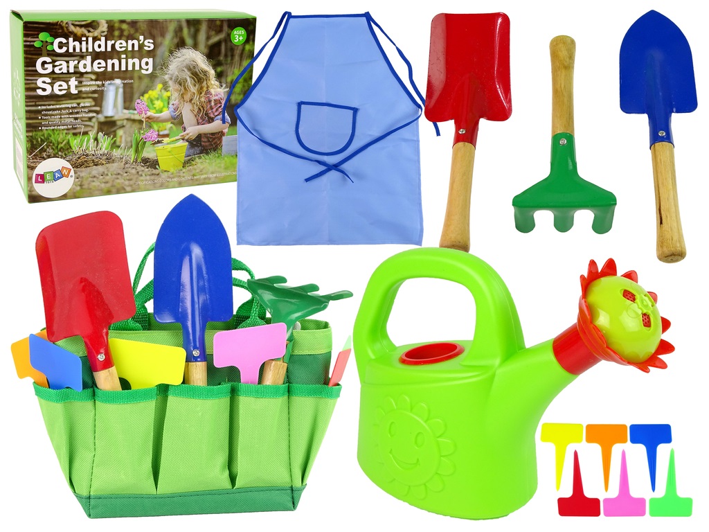Vso orodje je zapakirano v priročni torbici, zato jo lahko vzamete s seboj na vrtnarijo, k prijatelju ali na počitnice. Dobro se obnese tudi kot igrača v peskovniku. Komplet je sestavljen iz uporabnega orodja in zalivalke. Lopata, grabljice in lopata imajo lesene ročaje in kovinske konice, ki zagotavljajo vzdržljivost in bodo vašemu malčku služili še vrsto let.