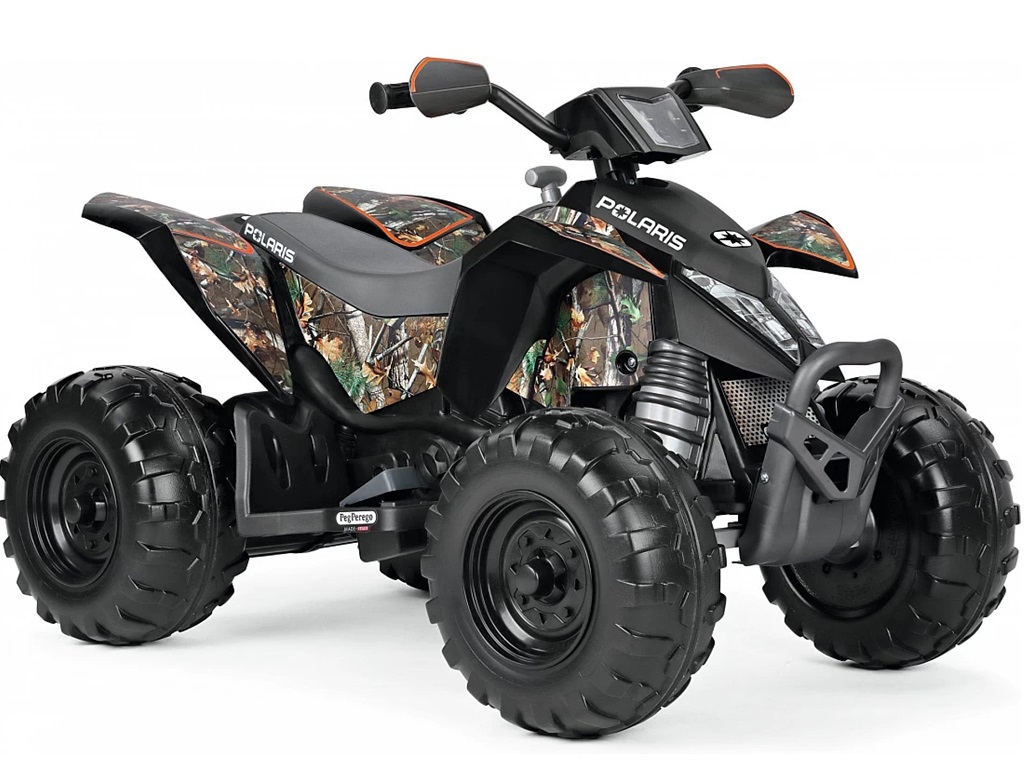 Otroški štirikolesnik Peg Perego Polaris Outlaw Camo je licenčna kopija originalnega vozila poznanega ameriškega proizvajalca štirikolesnikov Polaris. Natančno povzema vse oblike in lastnosti originalne različice. Velika kolesa z izjemnim oprijemom omogočajo vožnjo tudi po zahtevnejših terenih. Zmogljivost premagovanja naklona do 10% pa zagotavlja še več zabave pri vožnji.