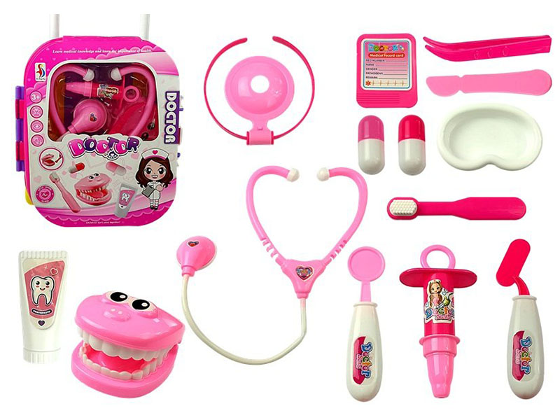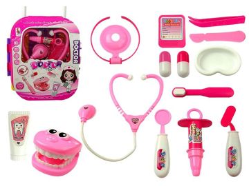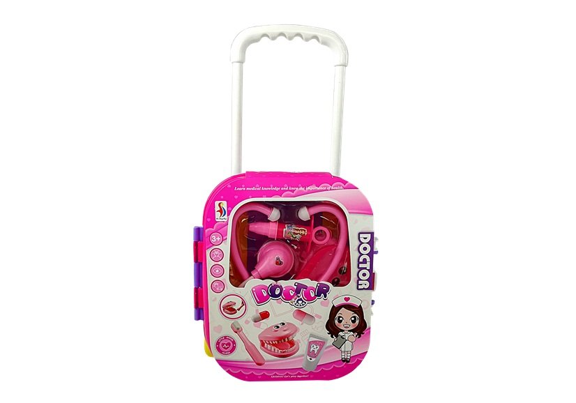 Obstajajo otroci, ki že od malih nog vedo, kaj želijo početi. Če vaš otrok zdravi vse igrače in trdi, da želi postati zdravnik, ga opremite s tem malim kovčkom za zobozdravnike. Njena bogata, večdelna oprema in estetsko izdelani medicinski pripomočki bodo spodbudili otrokovo domišljijo in mu omogočili, da fantastično zabavo kombinira z učenjem in razvijanjem lastnih strasti. Skrbno izdelane imitacije pravih medicinskih orodij bodo razveselile vašega otroka. Uporabljanje takšnih igralnih garnitur je tudi odlična metoda, ki omogoča otroku enostavno razložiti, da obisk zdravnika ni strašen. Velika prednost kompleta je njegova univerzalnost. Igrača je lahko kovček, ki ga otrok nosi z ročajem, ali vozi na kolesih. Komplet je izdelan v roza barvi.