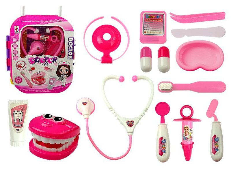 Obstajajo otroci, ki že od malih nog vedo, kaj želijo početi. Če vaš otrok zdravi vse igrače in pravi, da želi biti zdravnik, ga opremite s tem malim zobozdravniškim kovčkom. Njegova bogata več delna oprema in estetsko izdelani medicinski instrumenti bodo spodbudili domišljijo vašega otroka in mu omogočili združevanje fantastične zabave z učenjem in razvojem lastnih strasti. Skrbno posnemanje resničnih medicinskih instrumentov bo razveselilo vašega otroka. Vključitev takšnih kompletov na igrišče je tudi odličen način, da svojemu otroku preprosto razložite, da obisk pri zdravniku ni nič strašnega. Velika prednost kompleta je njegova vse stranskost. Igrača je lahko tako kovček, ki ga otrok nosi z ročajem, kot vozilo na kolesih. Komplet je izdelan v belo-pink barvi.