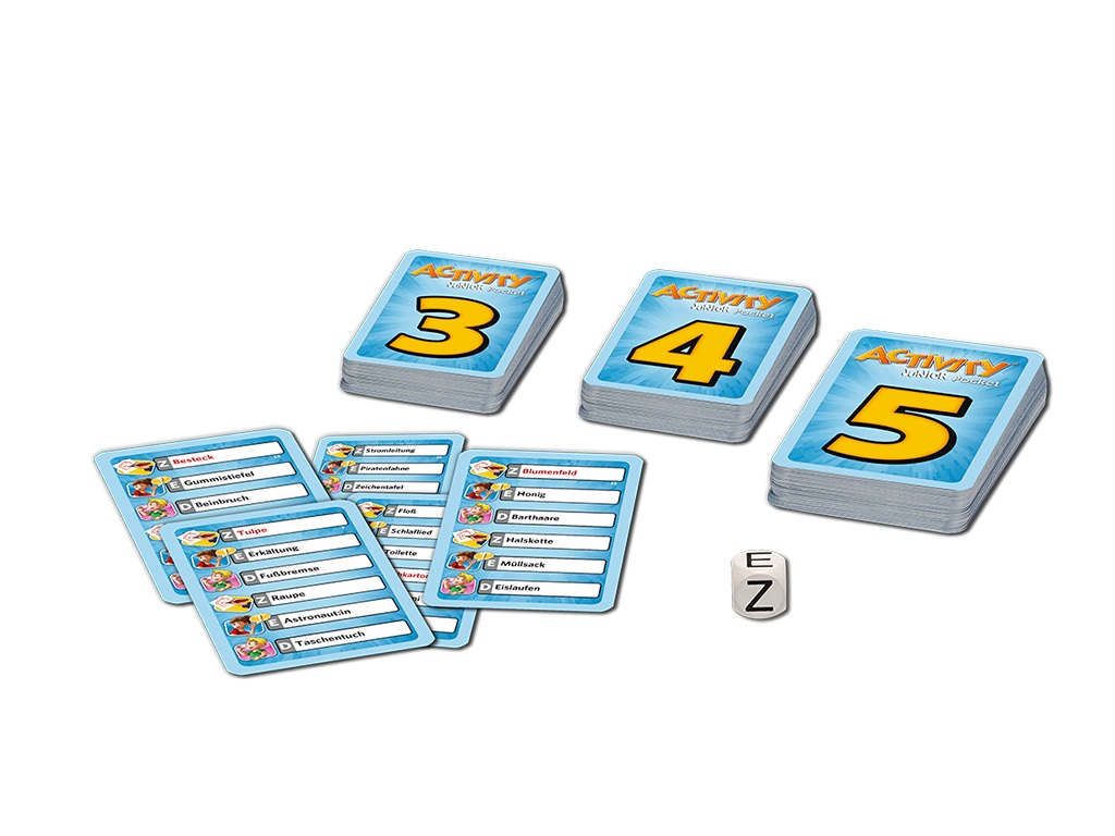 Ta različica je samostojna igra, ki jo lahko uporabljate ločeno ali kot razširitev drugih različic Activity (Junior, Original, Travel ali Pocket). Kompaktna zasnova omogoča, da igro enostavno vzamete s seboj – v torbo, nahrbtnik ali celo v žep.