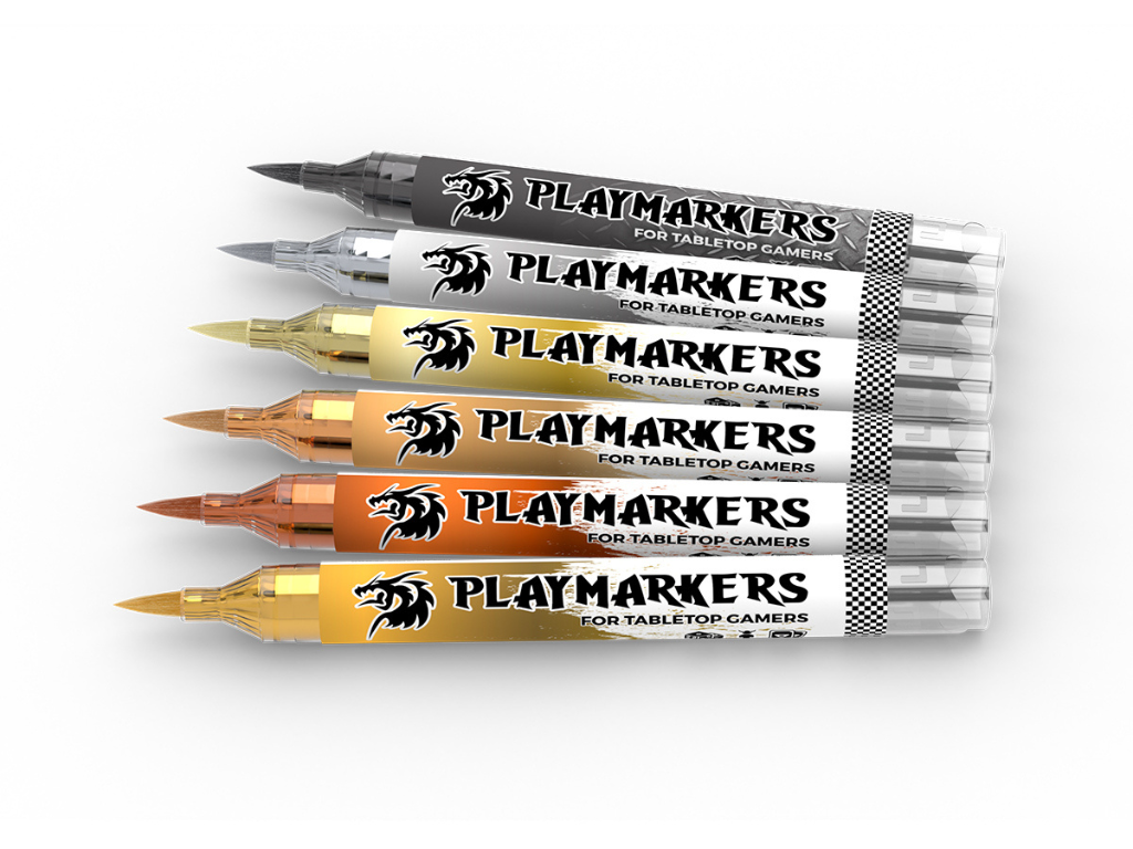 Playmarkers Set – Full metal je specializiran komplet akrilnih markerjev z metalik odtenki, zasnovan za barvanje oklepov, orožij in dodatkov na miniaturah. Set vsebuje ključne kovinske barve, ki omogočajo ustvarjanje realističnih, sijočih in obrabljenih kovinskih efektov.