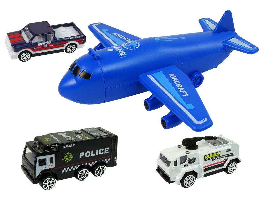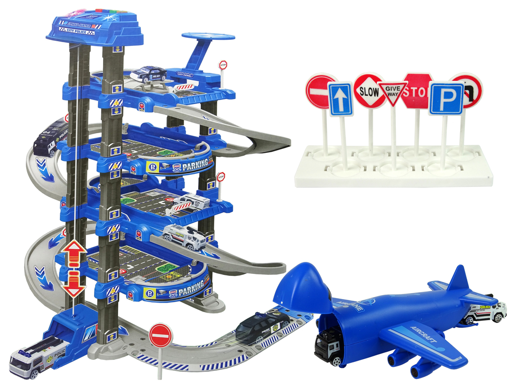 - set vsebuje 3 policijske avtomobile, transportno letalo in električno dvigalo
