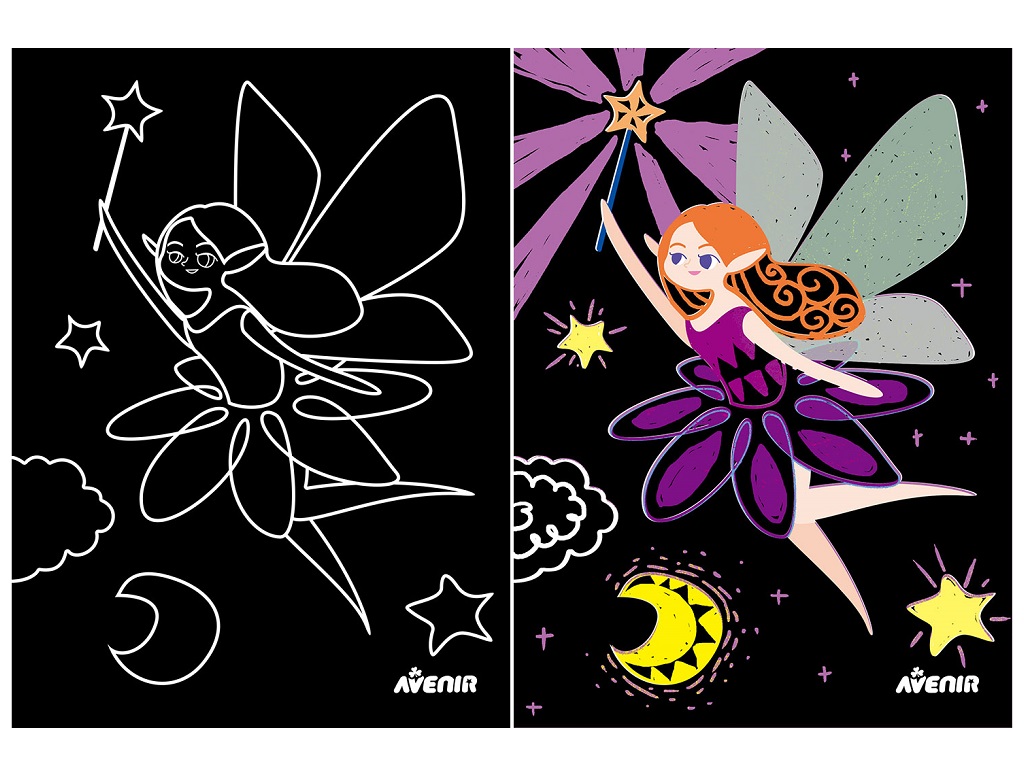 8 listov črnega papirja s skritimi barvnimi slikami pravljičnih vil