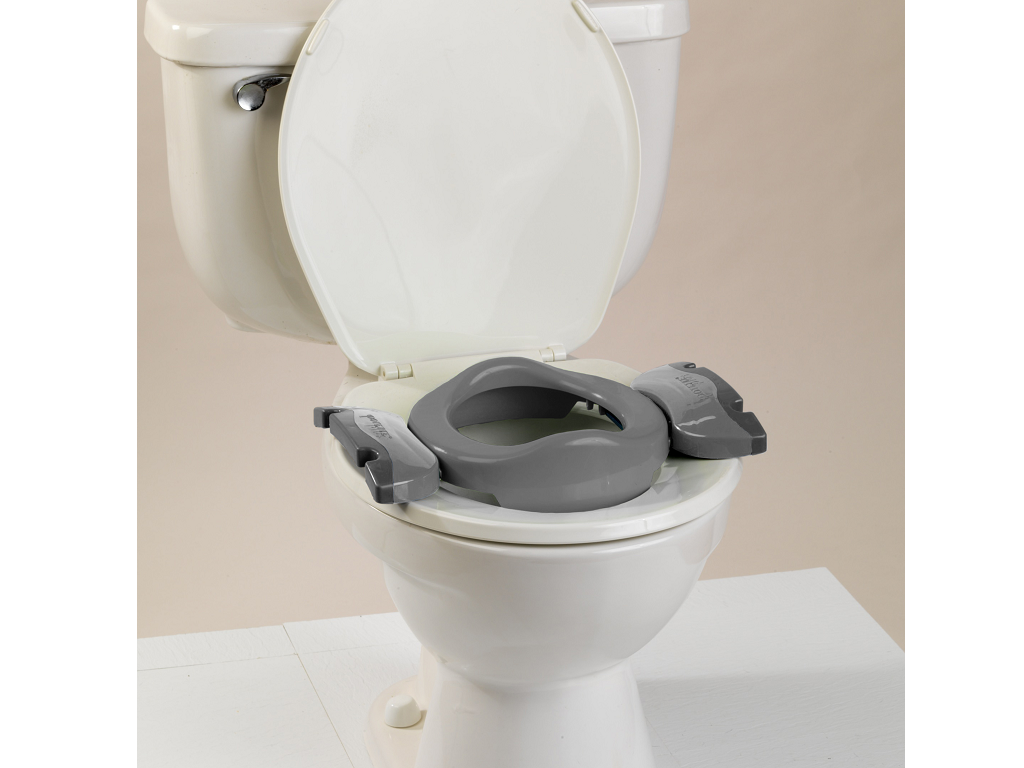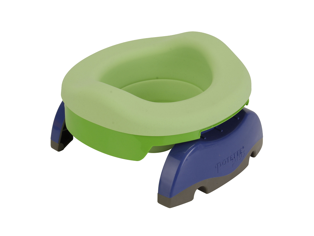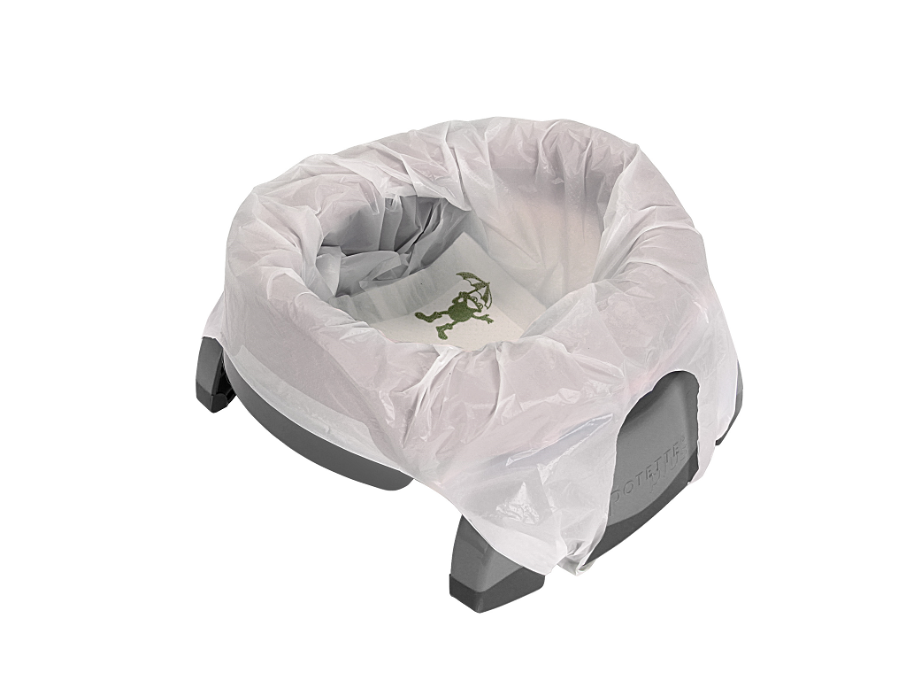 Praktična, prenosna, zložljiva kahlica 2v1, je sestavljena iz udobnega sedeža in gumijastih nog proti drsenju ter bio razgradljivih vrečkic z vpojnim podlago. Lahko pa se namesti tudi na vsako straniščno školjko.