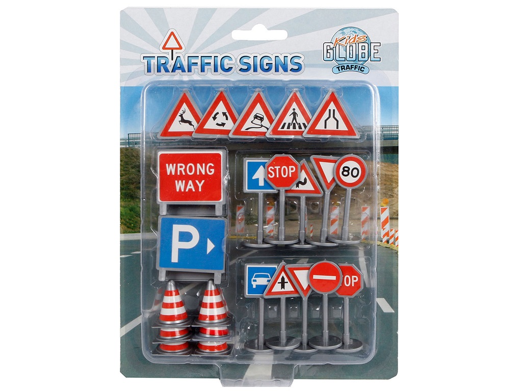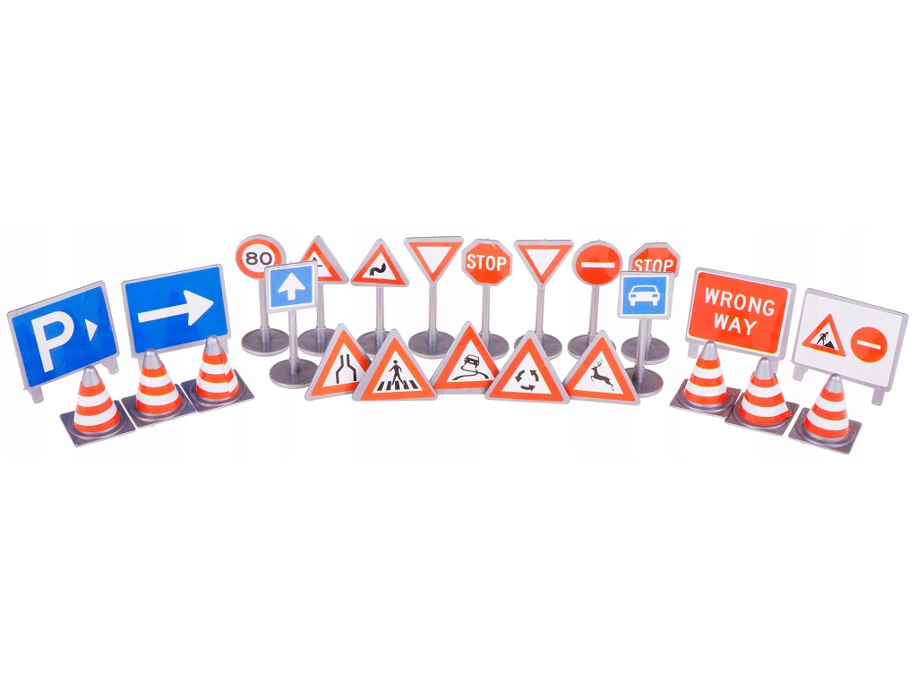 Prometni znaki 25 kom – Prometni znaki so osnovni del vsake igre s prometom ali seta za gradnjo mestnega okolja. Ta komplet vsebuje 25 različnih prometnih znakov, ki bodo popestrili vsako igro, spodbudili otrokovo domišljijo in mu omogočili, da se nauči osnov prometnih pravil.