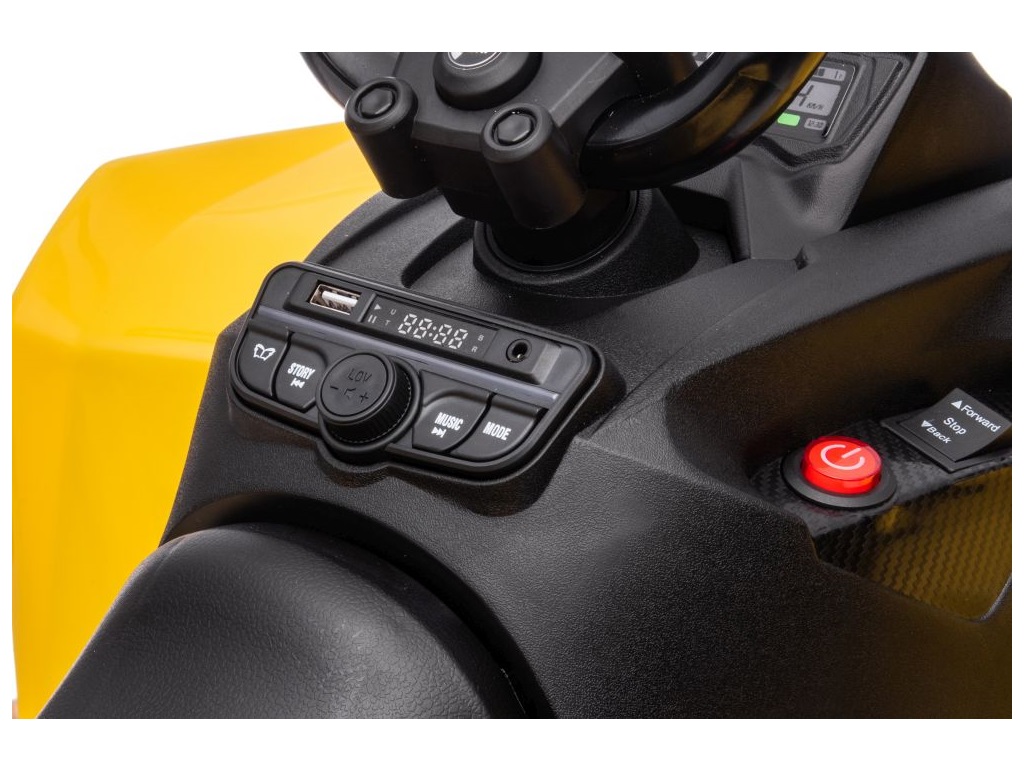 Quad na akumulator Can-Am Renegade rumen je idealen za terensko vožnjo. Quad ima vzmetenje in 45 W motorje, zaradi česar je udoben in zagotavlja dolgo življenjsko dobo. Primernen je za otroke od 3 let do 6 let. Quad ima funkcijo počasnega štarta – Ko pritisnete stopalko za plin, začne štirikolesnik počasi pospeševati. Primeren tudi za manjše otroke – zahvaljujoč nastavitvi počasnega štarta in nizke hitrosti.