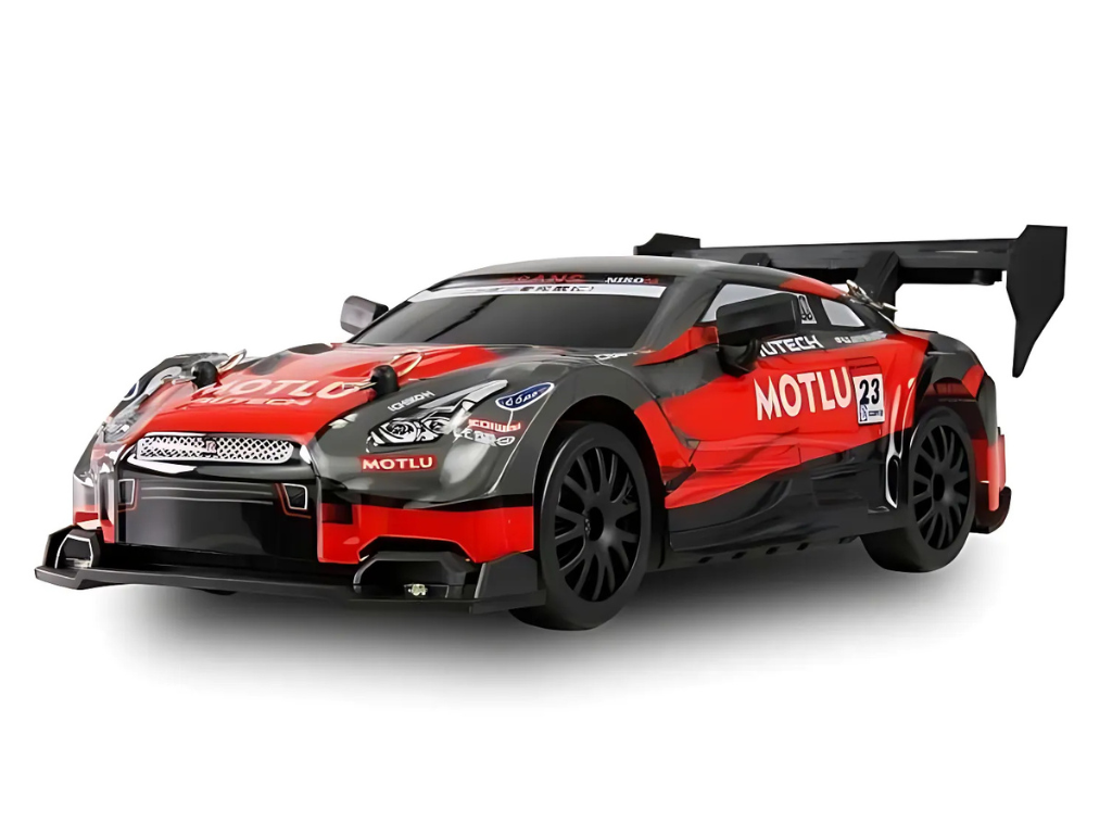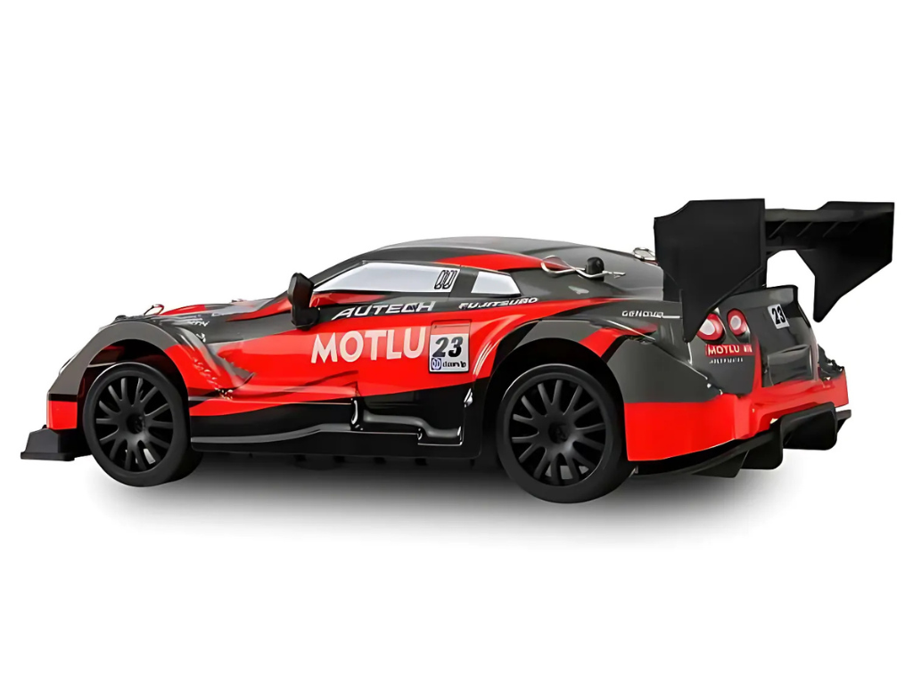 RC Drift Racing Car 1:24 rdeč – Odkrijte razburljiv svet dirkalnih avtomobilov s tem RC Drift Racing Car  1:24 v rdeči barvi. Ta replika dinamičnega športnega avtomobila v merilu 1:24 zagotavlja nepozabno vožnjo z nadzorovanim drsenjem skozi zavoje, zahvaljujoč štirikolesnemu pogonu. Nameščene drift pnevmatike omogočajo spektakularne drift manevre na gladkih površinah, medtem ko LED osvetlitev na sprednjem, zadnjem delu in podvozju poudarja športni videz modela. Popolna izbira za vožnjo v temnih prostorih ali zunaj ob mraku.