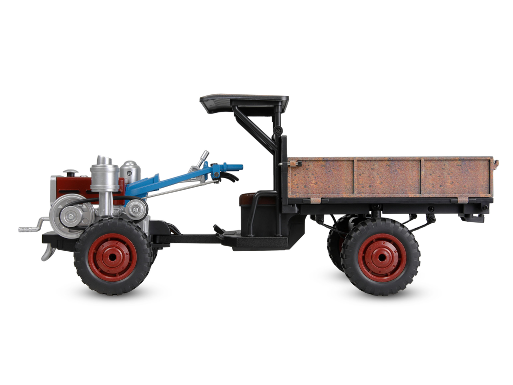 Traktor poganja zmogljiv 4WD sistem z dvema motorjema, ki zagotavljata dober oprijem na različnih podlagah. Guma na pnevmatikah omogoča stabilnost in boljši nadzor. Za še bolj realistično izkušnjo poskrbijo LED luči, zvok motorja in funkcija dima na vodni osnovi.